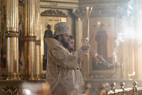 Богослужебные песнопения исполнил архиерейский хор под управлением Ярослава Филипсонова.