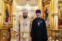 Его Высокопреосвященству сослужили: благочинный Серпуховского церковного округа иерей Дионисий Коськин, настоятель храма архимандрит Кирилл (Костиков) и духовенство Подольской епархии.