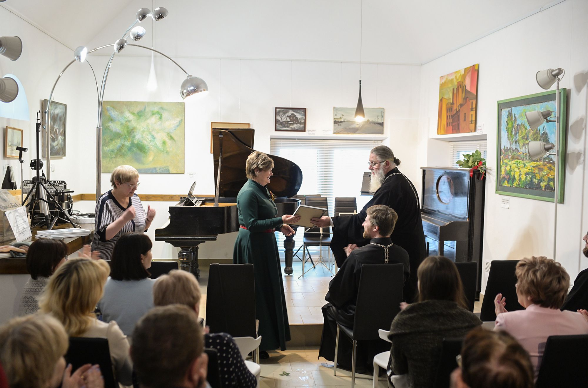 Перед гостями мероприятия выступили музыканты творческой мастерской "Лундстрем-трио": Леонид Лундстрем — скрипка, Мария Воскресенская — фортепиано, Владимир Нор — виолончель. Было исполнено Трио ля минор «Памяти великого художника» Петра Ильича Чайковского.