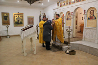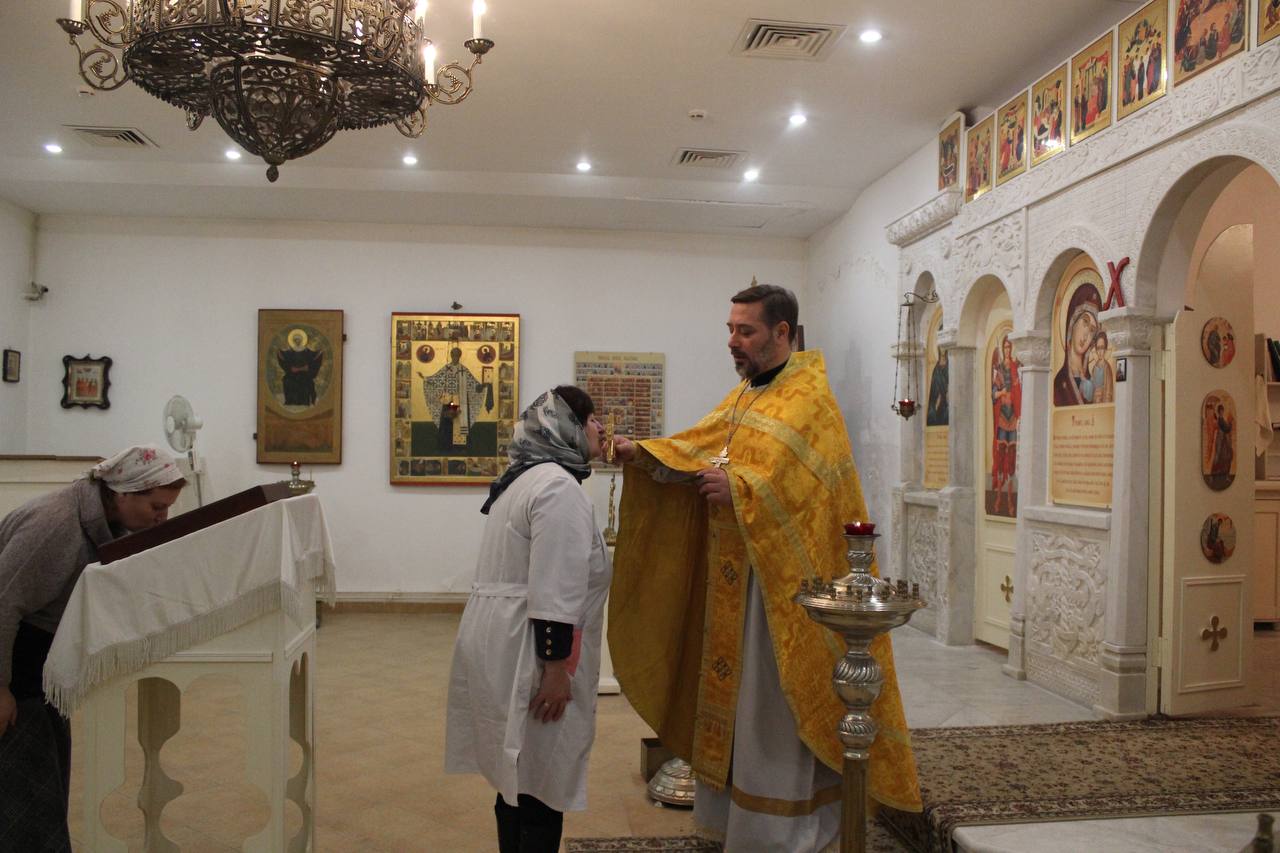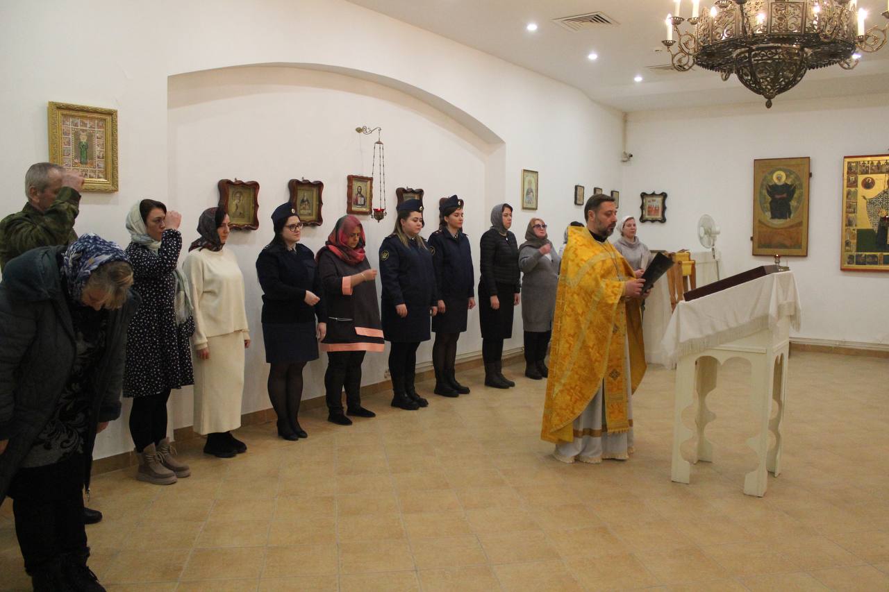 19 декабря 2024 года в Никольском храме при СИЗО-7 г. Егорьевска в день престольного праздника настоятель Знаменского храма д. Алёшино иерей Роман Теребилкин совершил Божественную литургию и славление святителю Николаю Мирликийскому, Чудотворцу. За Литургией молились сотрудники учреждения. По окончании богослужения отец Роман поздравил всех собравшихся с праздником и подарил иконки с изображением святого и молитвой.
