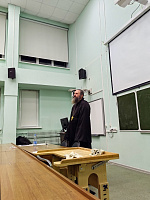 От лица благочинного церквей Дубненского-Талдомского округа протоиерея Павла Мурзича и всех собравшихся, дорогого гостя, за уникальную и интересную лекцию, поблагодарил ответственный за взаимодействие с Государственным университетом «Дубна», клирик храма Рождества Иоанна Предтечи г. Дубны иерей Павел Некрасов.
