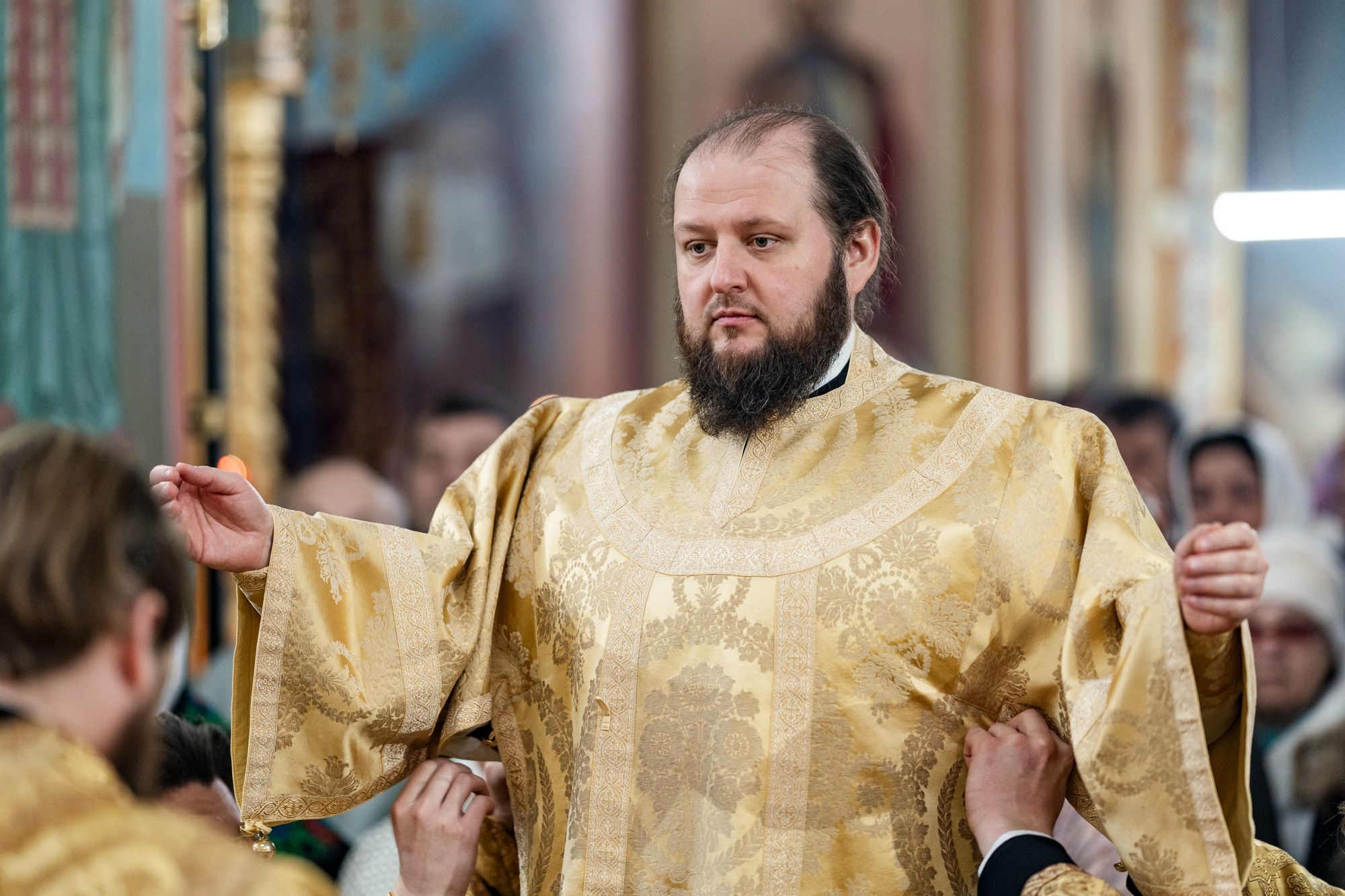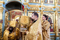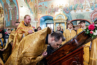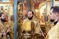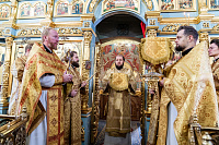 Его Высокопреосвященству сослужили секретарь Подольского епархиального управления, благочинный Чеховского церковного округа и настоятель храма иерей Константин Семёнов, благочинный Серпуховского церковного округа иерей Дионисий Коськин, духовенство Чеховского и Подольского благочиний.