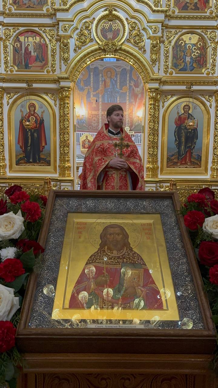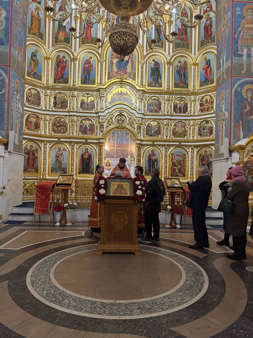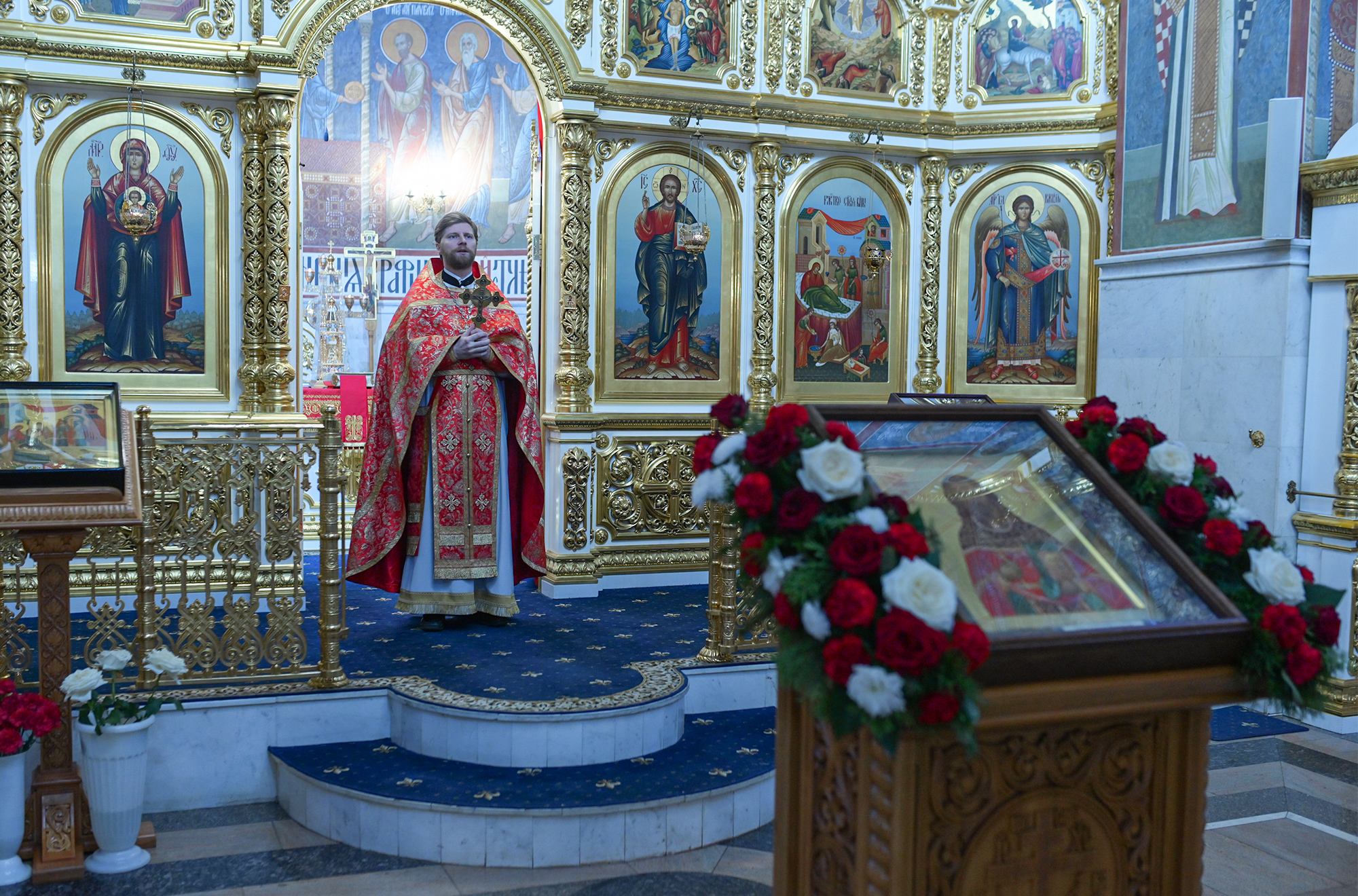 В конце литургии было совершено славление перед чтимой иконой праздника. Затем отец Димитрий поздравил прихожан храма с праздничным днём и обратился к верующим со словами назидания.
