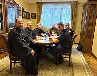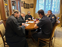 24 декабря в доме церковного причта при Александро-Невском храме благочинный 1-го Егорьевского округа протоиерей Сергий Кожевников, благочинный 2-го Егорьевского округа иерей Сергий Ершов, ответственный по взаимодействию с Вооруженными силами и правоохранительными органами иерей Сергий Посохин подписали планы совместной деятельности на 2025 год с начальником вневедомственной охраны майором полиции Д. А. Шебаршовым, начальником ОМВД полковником полиции В.М. Пасенко, начальником отдела Госавтоинспекции майором полиции Шкиткиным А.Н. и командиром в/ч 48905 подполковником Д.А. Штефаном.