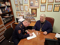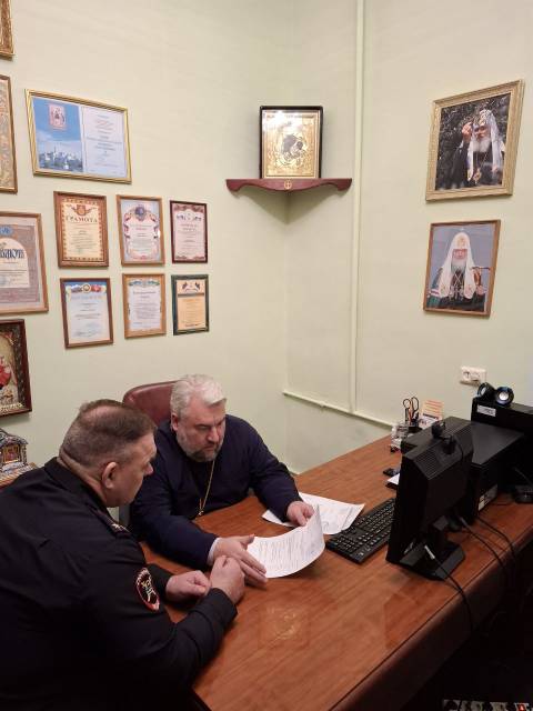 Перед процедурой подписания настоятель храма, благочинный 2-го Воскресенского (Белоозерского) благочиннического округа, председатель Отдела по взаимодействию с Вооруженными силами правоохранительными органами и казачеством Коломенской Епархии - протоиерей Сергий Рыбаков, секретарь Отдела - иерей Георгий Лобков, сотрудник Отдела - иерей Евгений Доля ответственный по взаимодействию с Вооружёнными силами в 1-м и 2-м Воскресенских благочиннических округах и иерей Илия Сычев ответственный по взаимодействию с казачеством в 1-м и 2-м благочиннических округах совершили Благодарственный молебен.