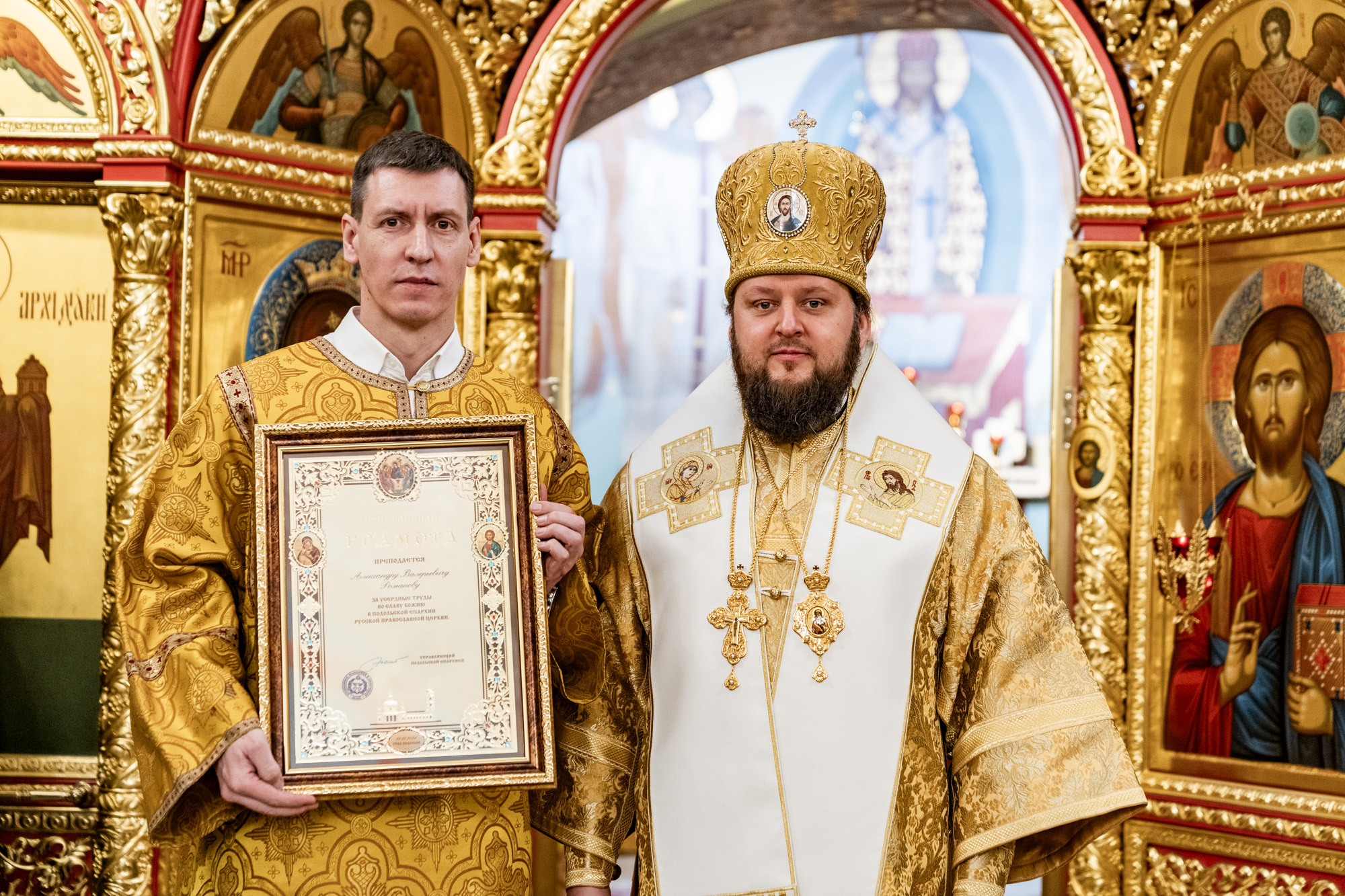 Богослужебные песнопения исполнил архиерейский хор под управлением Ярослава Филипсонова.