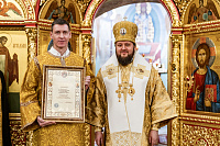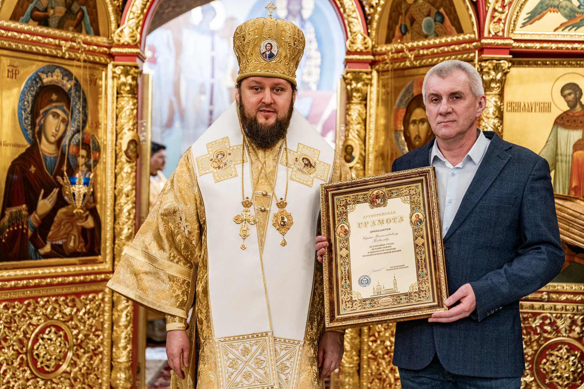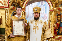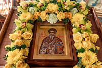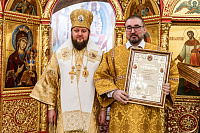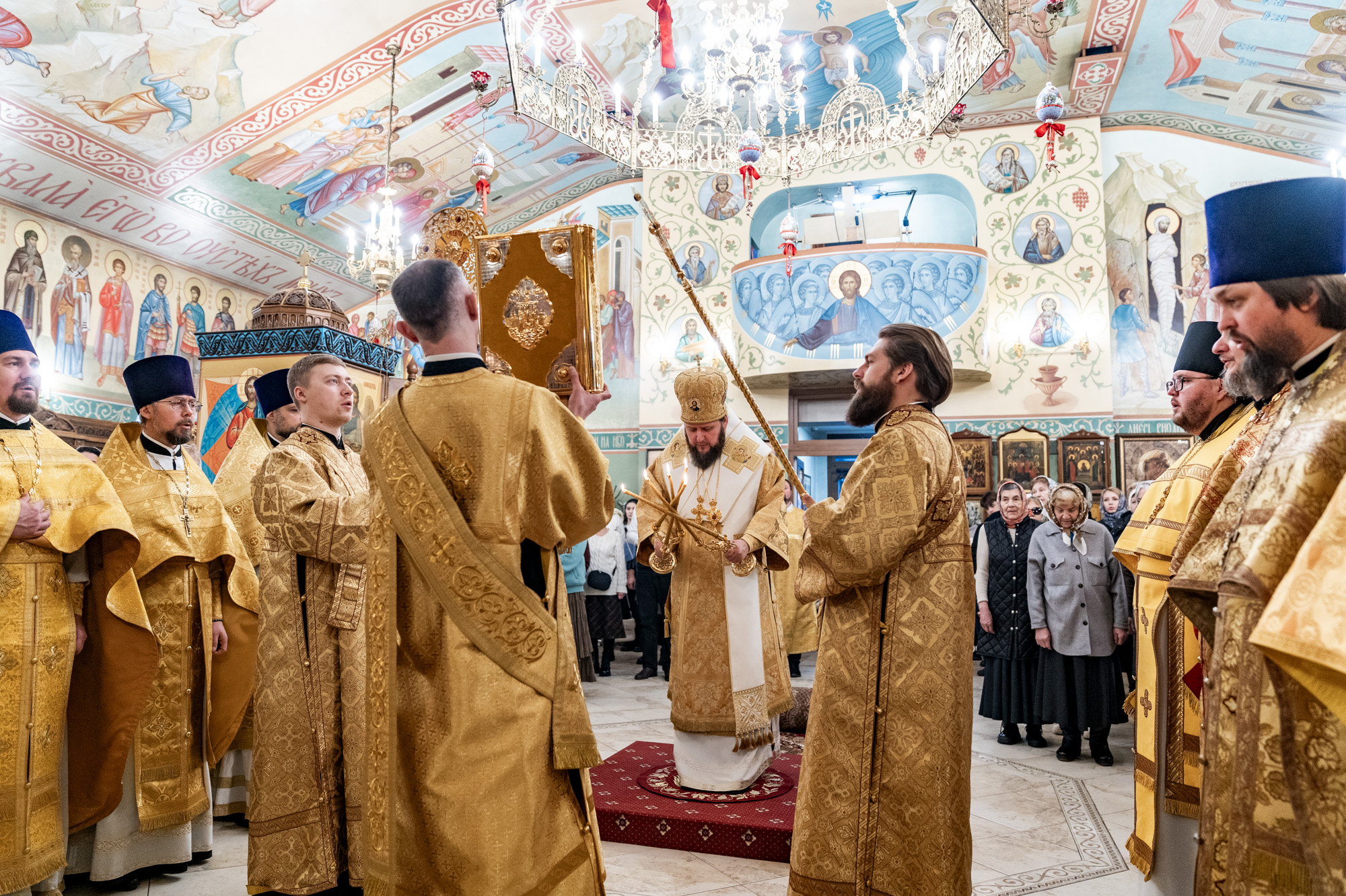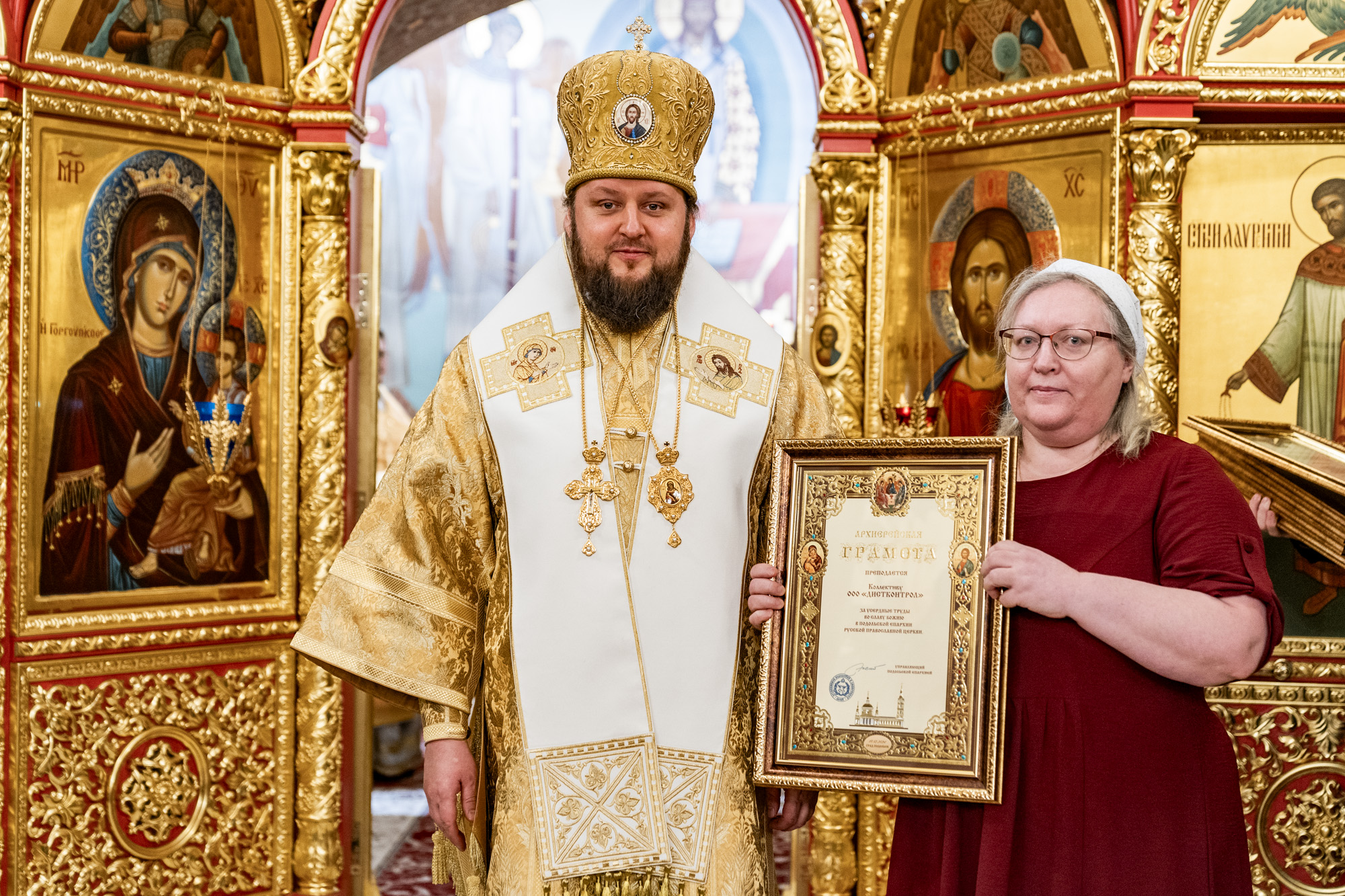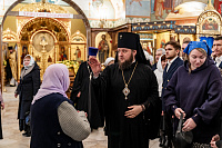 По окончании Божественной литургии было совершено славление святителю Спиридону. Затем архиепископ Аксий обратился к молящимся с архипастырским словом. Также владыка вручил архиерейские грамоты активным сотрудникам и благотворителям храма.