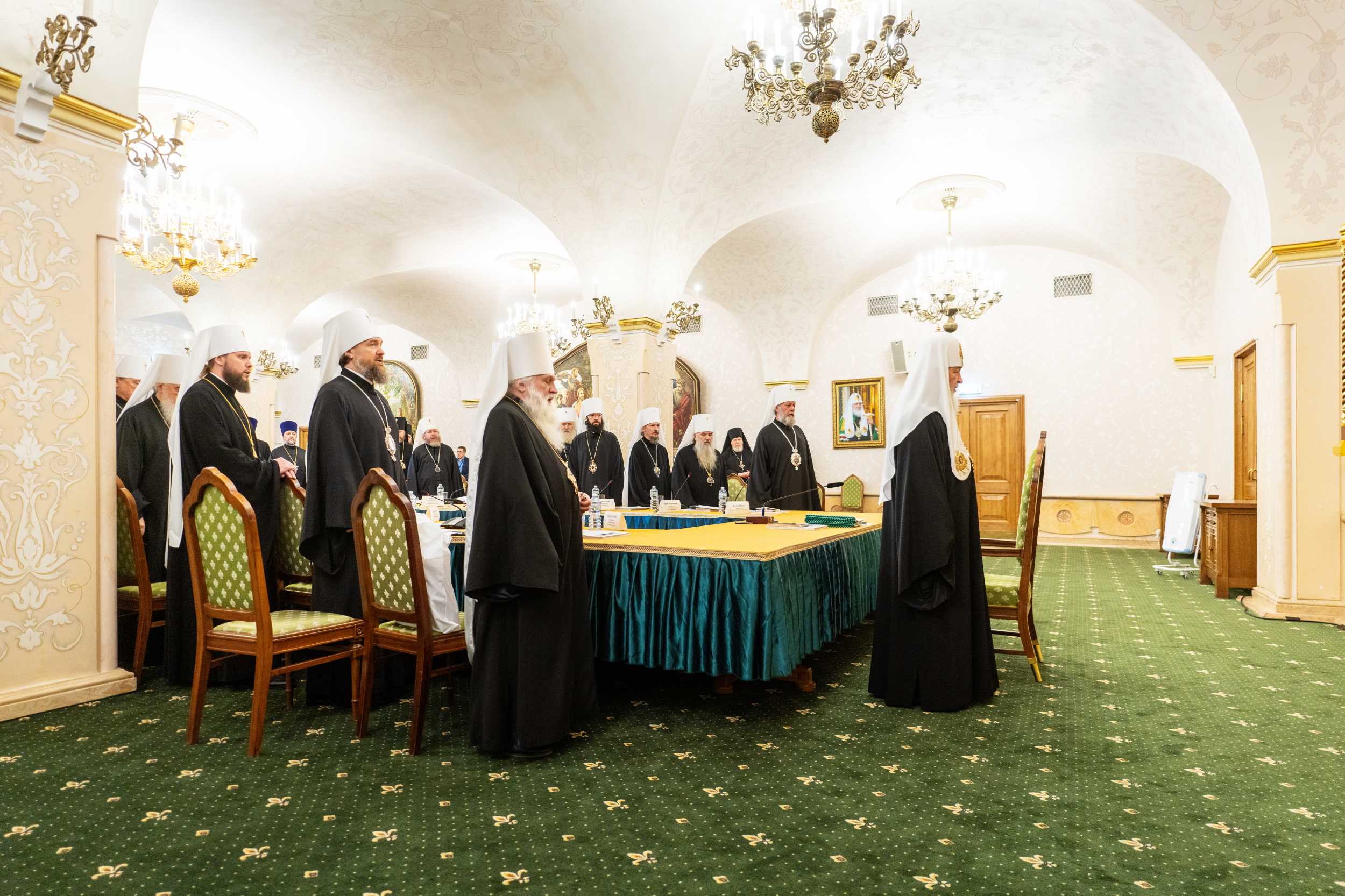 В заседании принимают участие постоянные и временные члены Священного Синода, члены Высшего Церковного Совета, а также ряд приглашенных сотрудников Управления делами Московской Патриархии и синодальных учреждений.