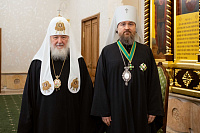 Далее Святейший Патриарх Кирилл во внимание к усердным архипастырским трудам и в связи с 50-летием со дня рождения наградил управляющего делами Московской Патриархии, первого викария Патриарха Московского и всея Руси по г. Москве, наместника Новоспасского ставропигиального мужского монастыря митрополита Воскресенского Григория орденом преподобного Сергия Радонежского II степени. Также Святейший Владыка в качестве памятного дара вручил митрополиту Григорию свою личную панагию.