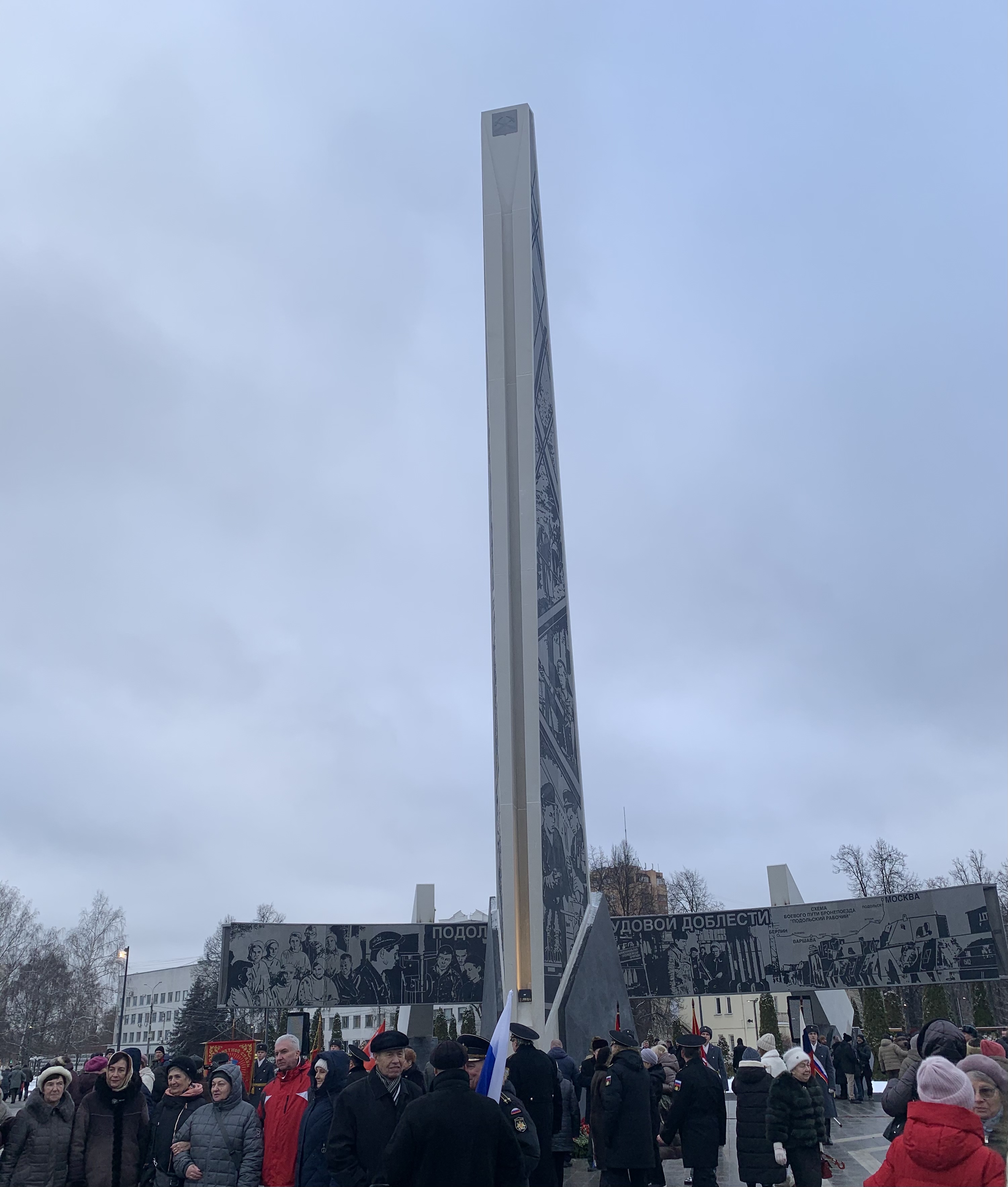 Открытие стелы стало большим событием для жителей муниципалитета. На открытии собрались сотни горожан: представители силовых структур и надзорных органов, Администрации, руководители крупнейших предприятий Подольска, военные, воспитанники юнармии, представители культурного сообщества, поэты, заинтересованные горожане.