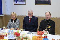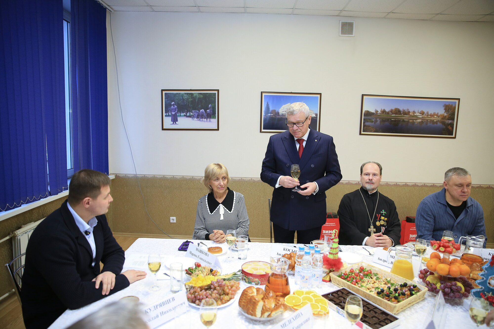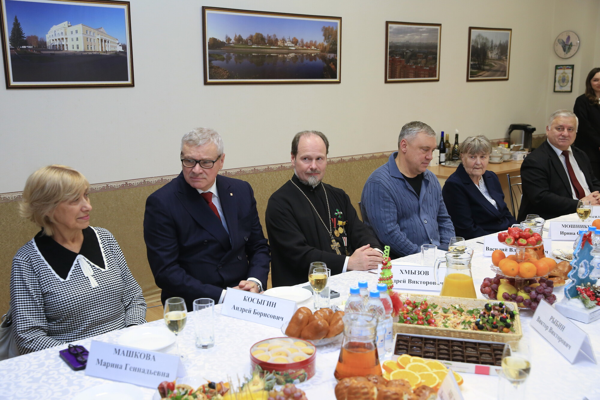 Во встрече принял участие почётный гражданин г. Долгопрудный, благочинный Долгопрудненского церковного округа протоиерей Андрей Хмызов. Он передал участникам торжественного мероприятия благословение и праздничное поздравление с наступающими праздниками Новолетия и Рождества Христова от Епархиального архиерея епископа Сергиево-Посадского и Дмитровского Кирилла, а также пригласил долгопрудненцев на Рождественские богослужения, которые будут совершаться во всех храмах церковного округа.