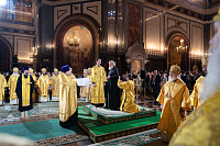 Вечером 7 января 2025 года, в праздник Рождества Господа Бога и Спаса нашего Иисуса Христа, Святейший Патриарх Московский и всея Руси Кирилл совершил великую вечерню в кафедральном соборном Храме Христа Спасителя в Москве.