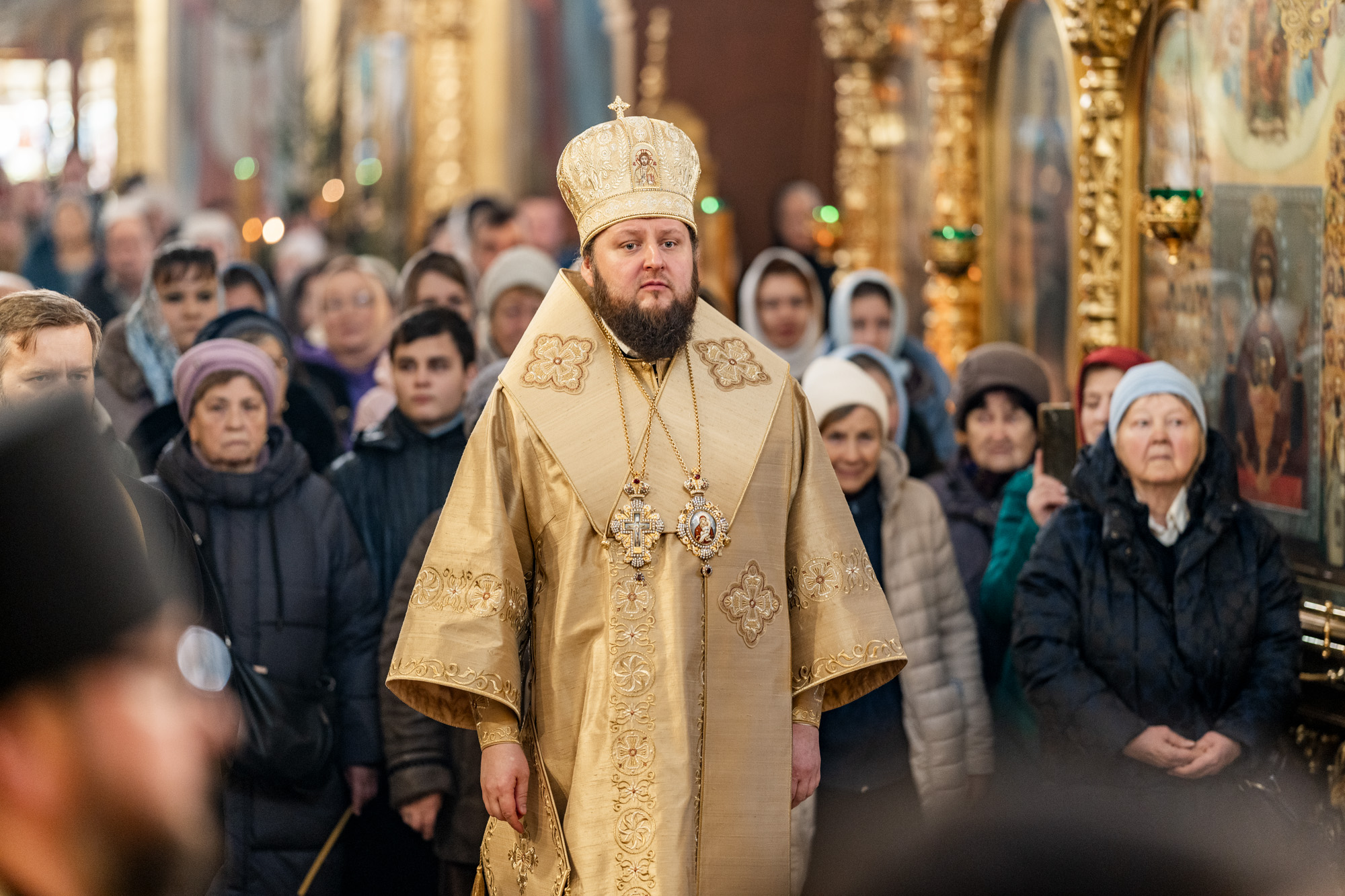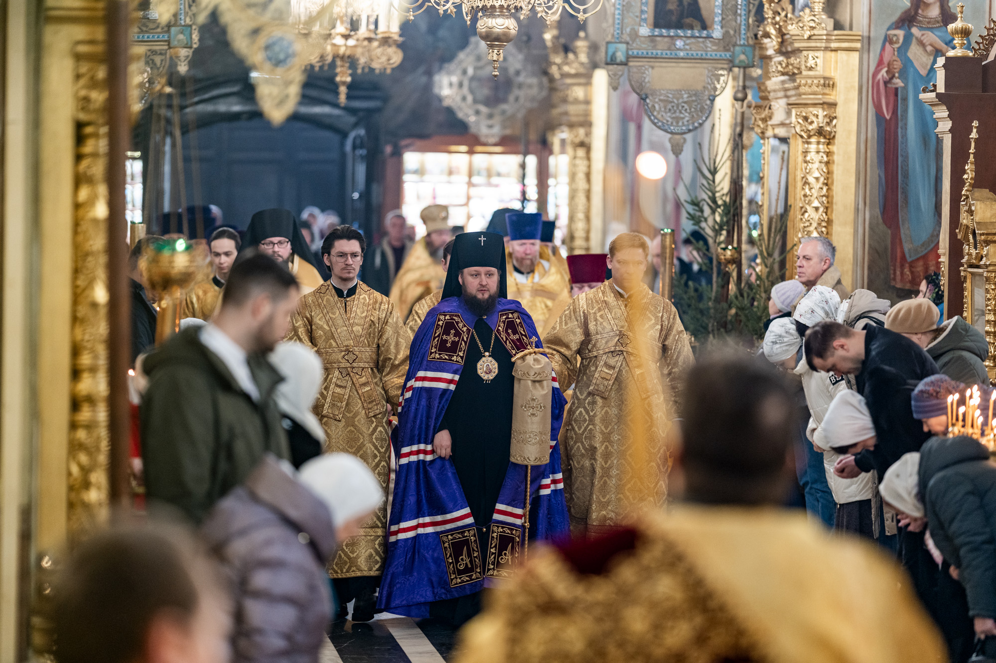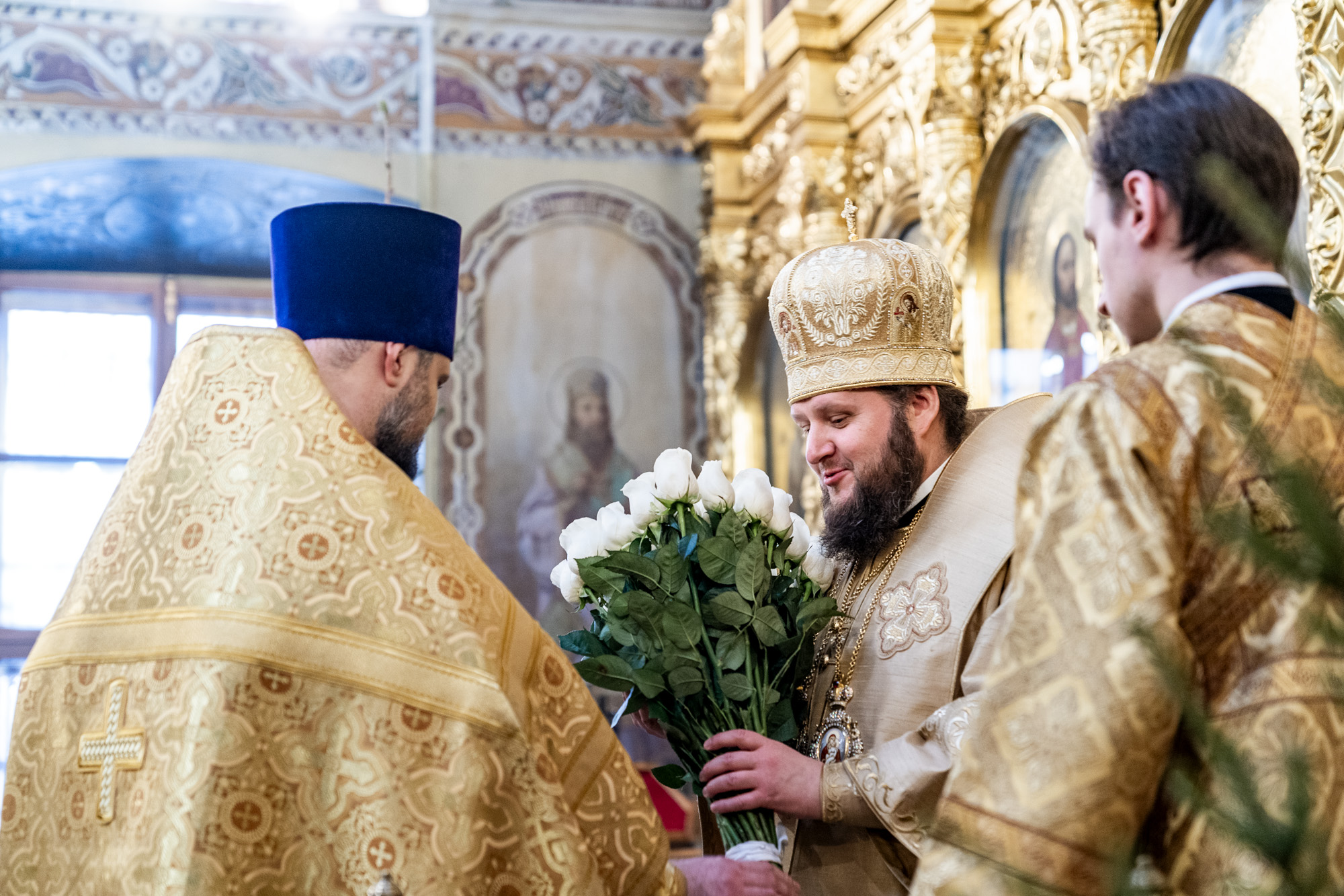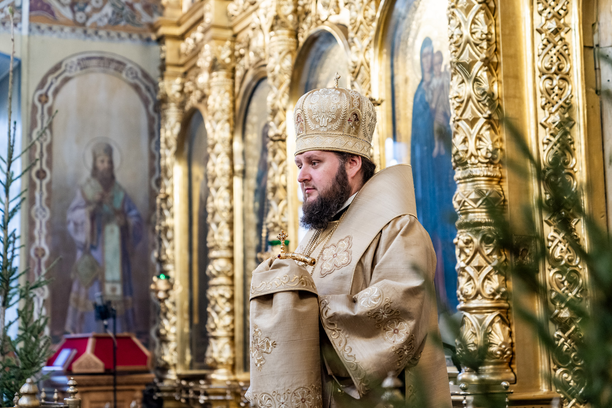 По окончании богослужения иерей Константин Семёнов поздравил владыку с праздником Рождества Христова, зачитав поздравительный адрес духовенства и мирян Подольской епархии.