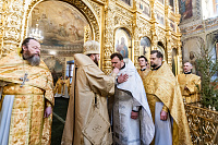 Его Высокопреосвященству сослужили: секретарь Подольского епархиального управления иерей Константин Семёнов, члены Епархиального совета, благочинные и духовенство Подольской епархии.