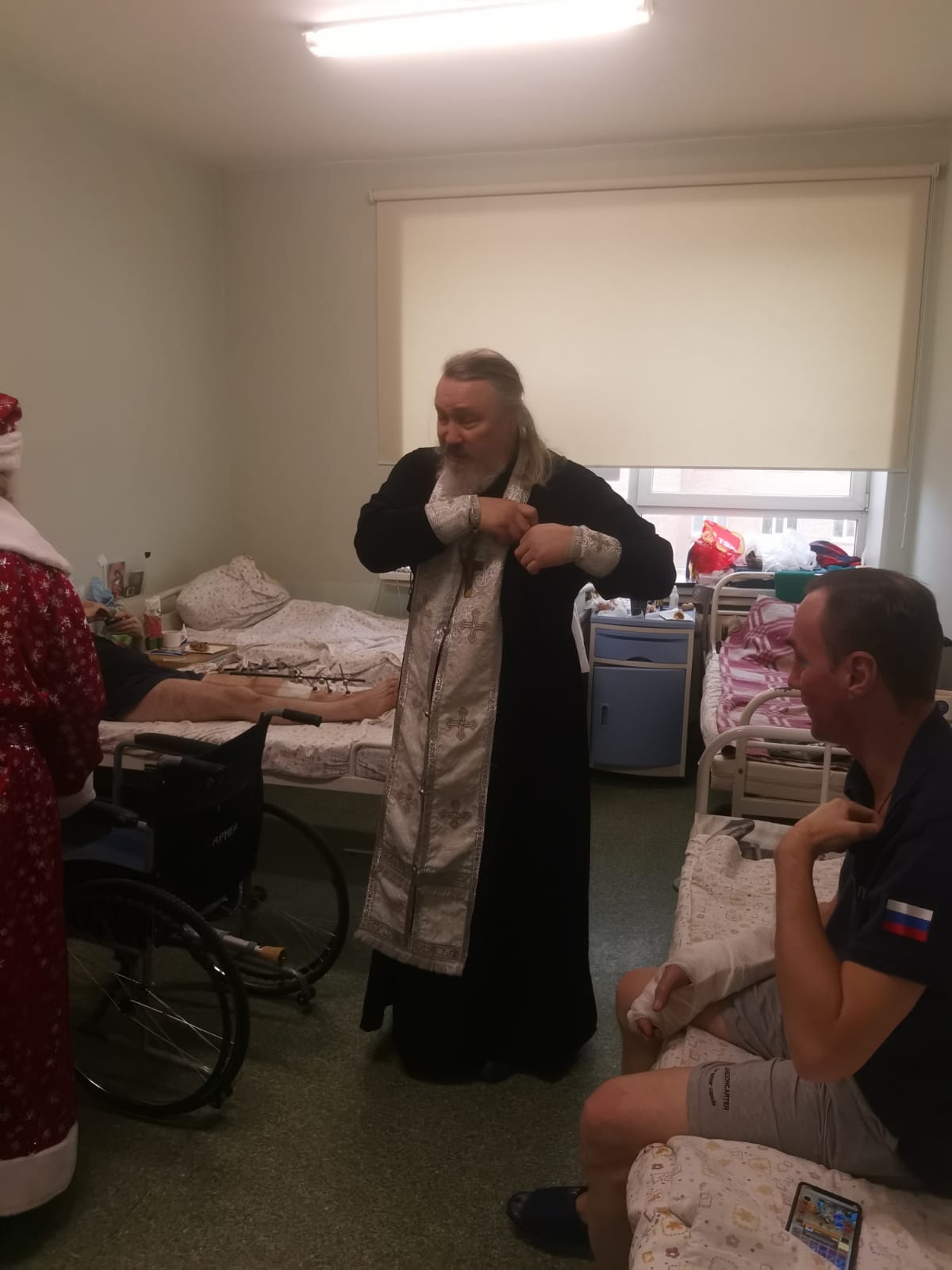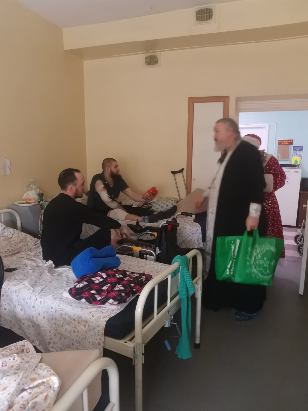 В праздник Рождества Христова 7 января 2025 года прихожане и настоятель Пантелеимоновского храма иерей Андрей Дрогонин посетили Мытищинскую городскую клиническую больницу (МГКБ), где поздравили с праздником 45 воинов, находящихся на лечении. После небольших бесед всем вручили подарки.
