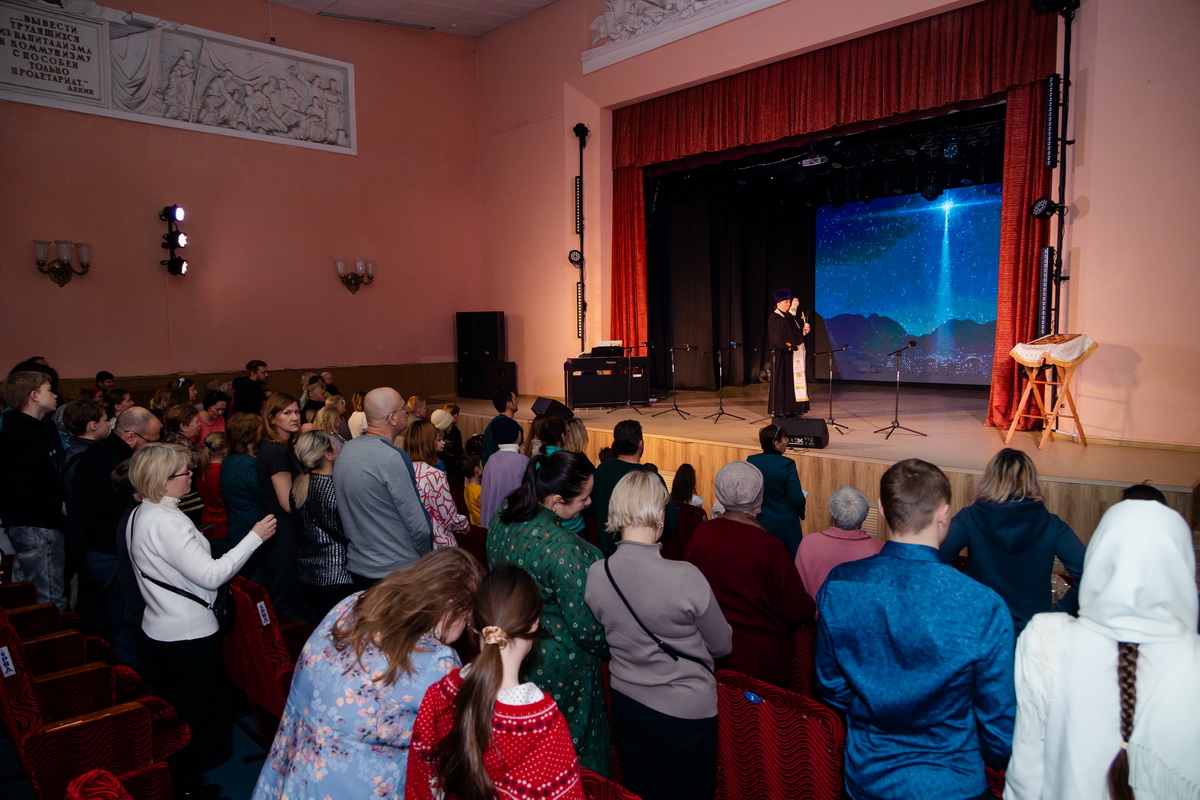 7 января 2025 года на приходе Богоявленского храма д. Бородино состоялся большой Рождественский праздник. После торжественного ночного богослужения прихожане собрались днем в приходском детском театре «Светилен». Открыл праздник священник Леонид Демаков, он поздравил всех собравшихся с Рождеством Христовым и пригласил присутствующих посмотреть спектакль «Волшебная флейта». Участники театрального кружка под руководством Н. А. Костырко представили вниманию зрителей яркий, красочный спектакль.