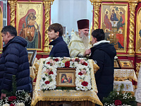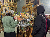 Со 2 по5 января 2025 г. во Владимирском храме г. Мытищи пребывали православные Святыни: частица Пояса Пресвятой Богородицы, частицы мощей святителя Николая Чудотворца и вмчц. Екатерины. Перед святынями непрерывно совершались молебны и читались акафисты, а прихожане близлежащих храмов и жители г.Мытищи имели возможность помолиться перед Святынями. 3 января 2025 г. во Владимирском храме г. Мытищи настоятелем Троицкого храма д. Троице-Сельцо протоиереем Димитрием Дубининым совместно с настоятелем Никольского храма пос. Николо-Прозорово иереем Сергием Головлёвым был отслужен молебен перед Святынями.