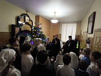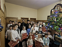 7 января 2025 года прихожане храма вмч. Пантелеимона после праздничной Литургии поздравили детей Мытищинского стационарного отделения института детства. В двух отделениях находились дети со всего Подмосковья, которые с радостью принимали поздравление, пожелания здоровья, наборы конфет и детские книжки из рук Деда Мороза и Снегурочки, а воцерковленные люди также брали благословение у протоиерея Андрея Кольцова. О мероприятии был снят и смонтирован ролик, который был тепло принят и высоко оценен прихожанами нашего благочиния.