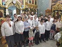 7 января 2025 года во Всехсвятском храме г. Мытищи, состоялся праздничный спектакль, организованный воспитанниками приходской воскресной школы. Ребята подготовили кукольный спектакль по Евангельским событиям, пели песни и читали стихи. По окончании праздника настоятель храма иерей Александр Гущин поздравил прихожан с праздником Рождества Христова и вручил детям праздничные подарки.