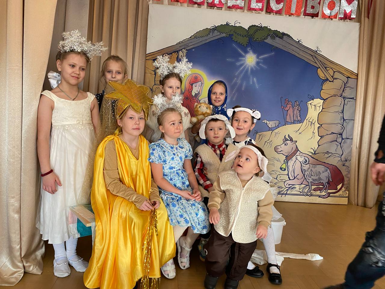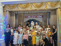 Учащиеся и родители семейной воскресной школы при храме святителя Тихона поздравили настоятеля, прихожан со Светлым праздником Рождества, исполнив песнопения, колядки и прочитав стихотворения русских поэтов 19 века. Постановка "Ангелы и Рождество" рассказала о силе молитвы и вере в Бога, которая помогает человеку во всех ситуациях.