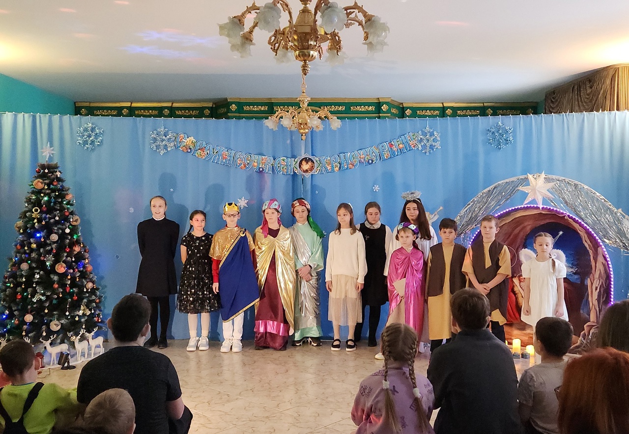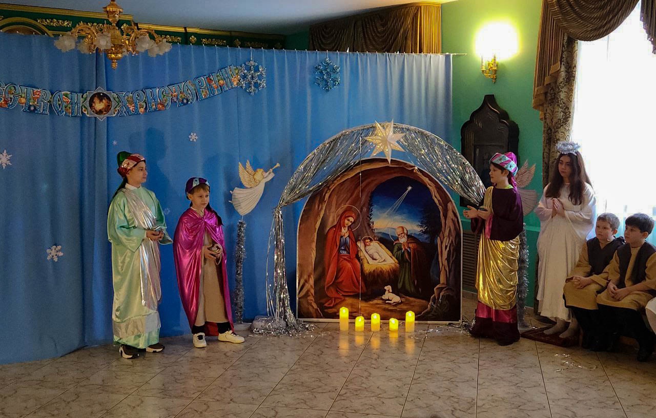 6 января воспитанники воскресной школы «Фавор» и православного молодёжного клуба "Очаг" представили рождественский спектакль для семей участников СВО.