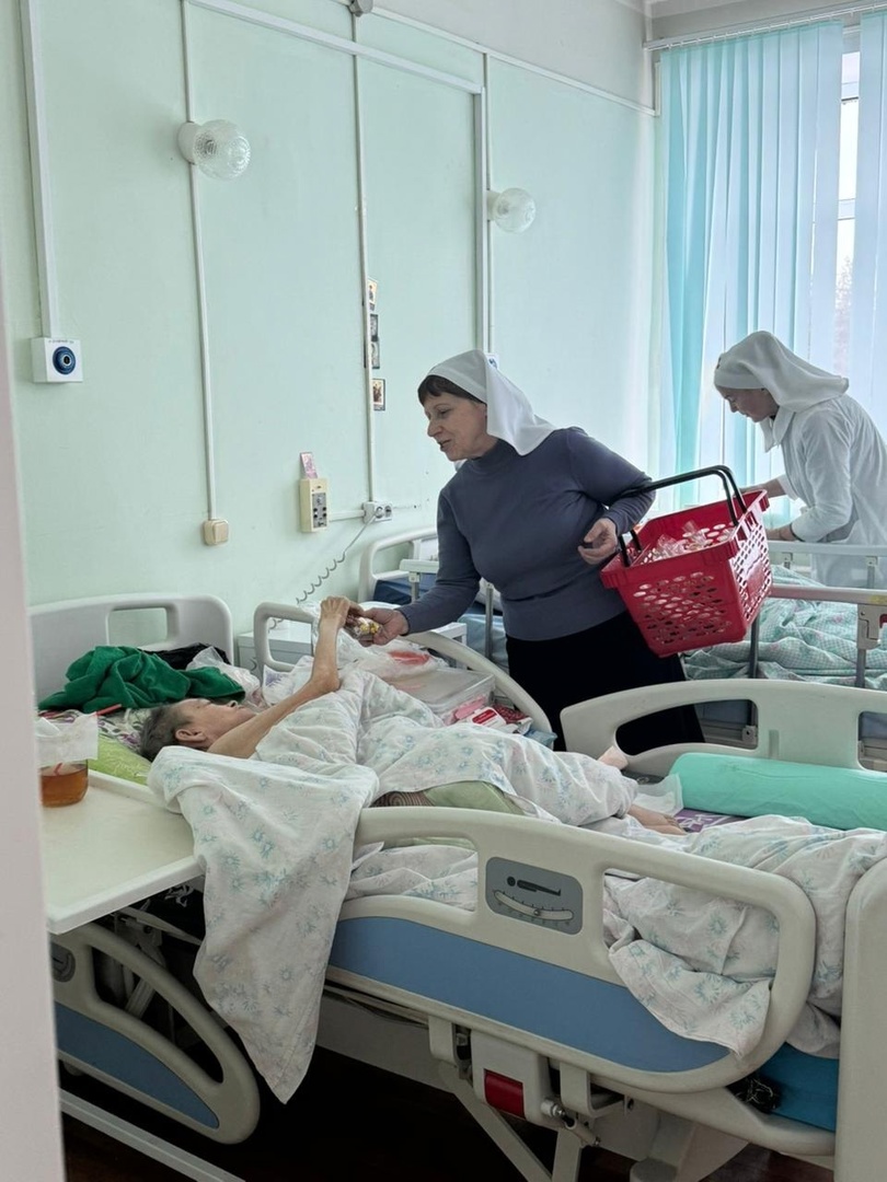 По окончании богослужения Сестры милосердия поделились радостью о Рождестве Христовом с сотрудниками и пациентами больницы.