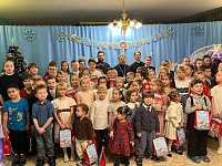 Благочинный 1-го Егорьевского церковного округа протоиерей Сергий Кожевников совместно с начальником ОМВД по городскому округу Егорьевск Виталием Михайловичем Пасенко поздравили детей с Рождеством Христовым и вручили сладкие подарки.