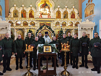 7 января в храме в честь иконы Божией Матери "Нечаянная Радость" поселка Некрасовского была совершена обедница. За богослужением молились военнослужащие, учащиеся воскресной школы и прихожане храма.