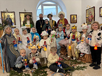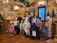 7 января дети из воскресной учебно-воспитательной группы при Спиридоньевском храме пос. Некрасовского провели праздничный концерт, после которого во время чаепития побеседовали с настоятелем храма иереем Владимиром Кировым о празднике Рождества Христова и получили подарки.