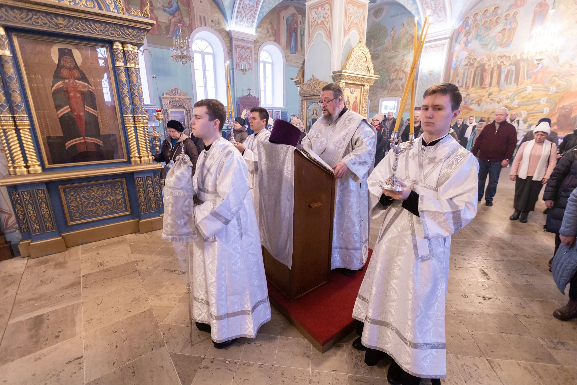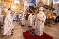 Богослужебные песнопения исполнил соборный хор под управлением Натальи Камышниковой.