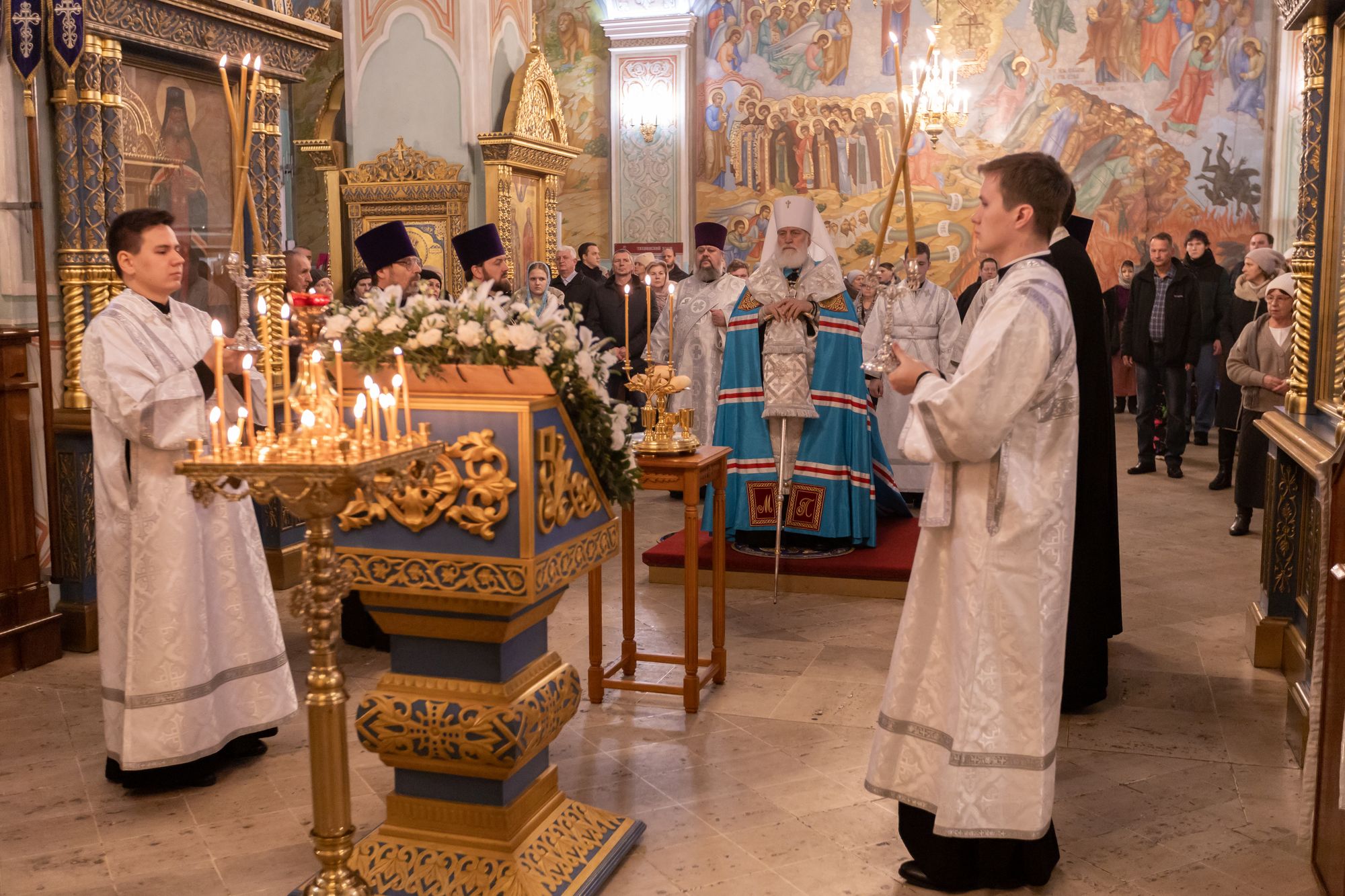 Богослужебные песнопения исполнил соборный хор под управлением Наталии Камышниковой.