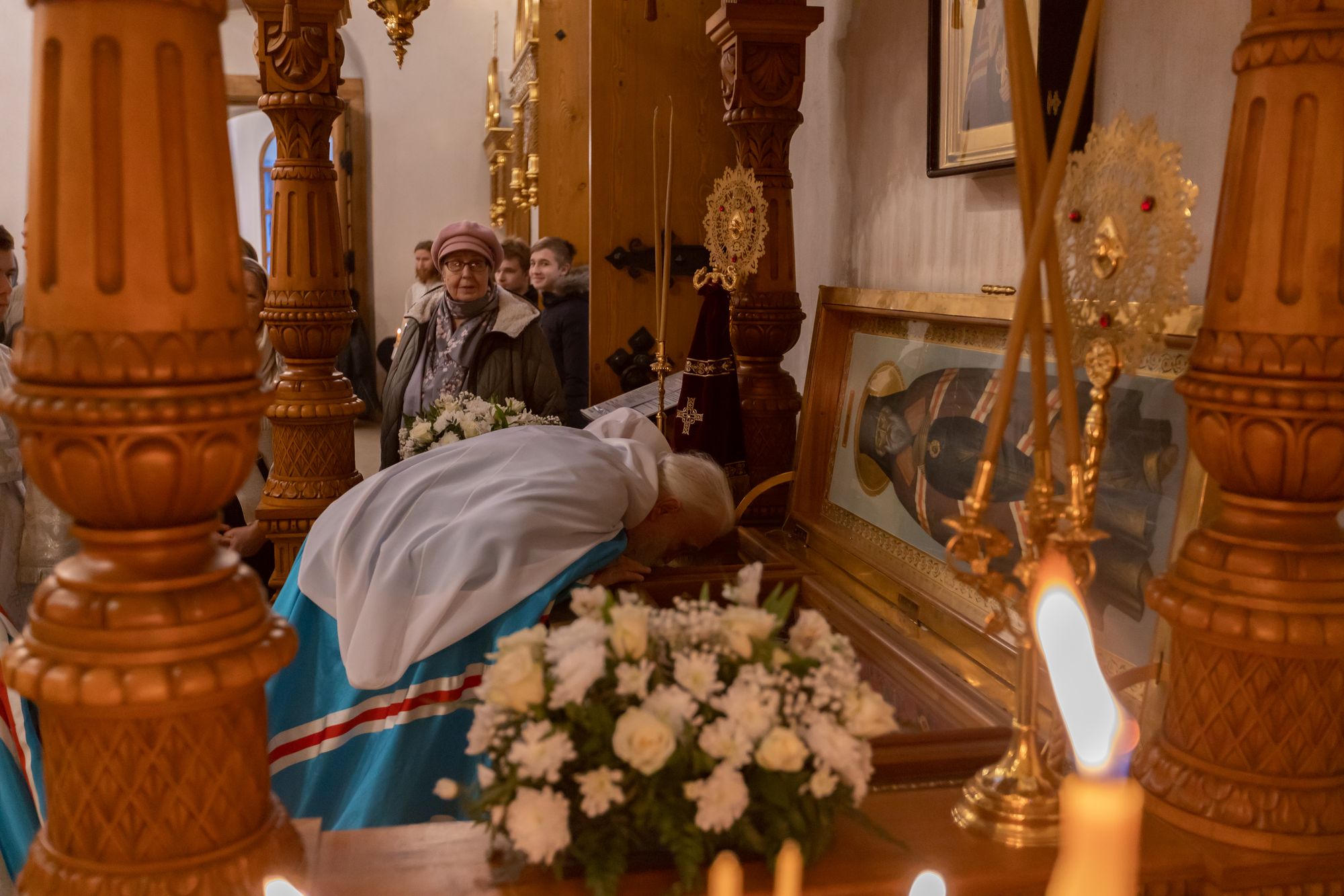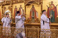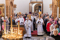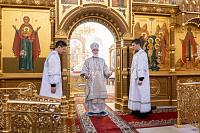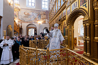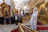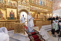Перед началом Божественной литургии Владыка помолился у мощей священноисповедника Феодосия, епископа Коломенского.