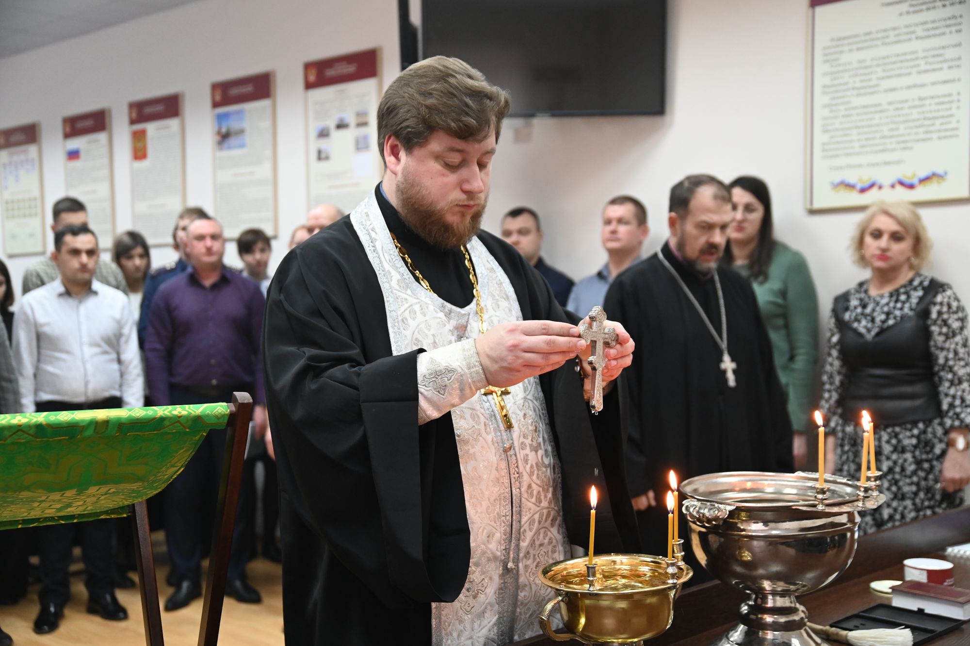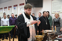 20 января, в попразднство Крещения Господня, председатель Межъепархиального отдела по тюремному служению Московской митрополии, помощник начальника ГУФСИН по организации работы с верующими священник Михаил Куземка и ответственный в Балашихинском благочинии за тюремное служение священник Сергий Головенко посетили Главное управление ФСИН России по Московской области, где совершили Чин великого освящения воды.