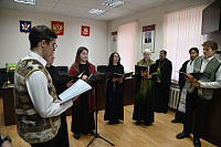После молебна для сотрудников аппарата ГУФСИН были исполнены духовные песнопения и Рождественские колядки в исполнении праздничного хора Николо-Архангельского храма г. Балашиха под управлением Ксении Красиковой.