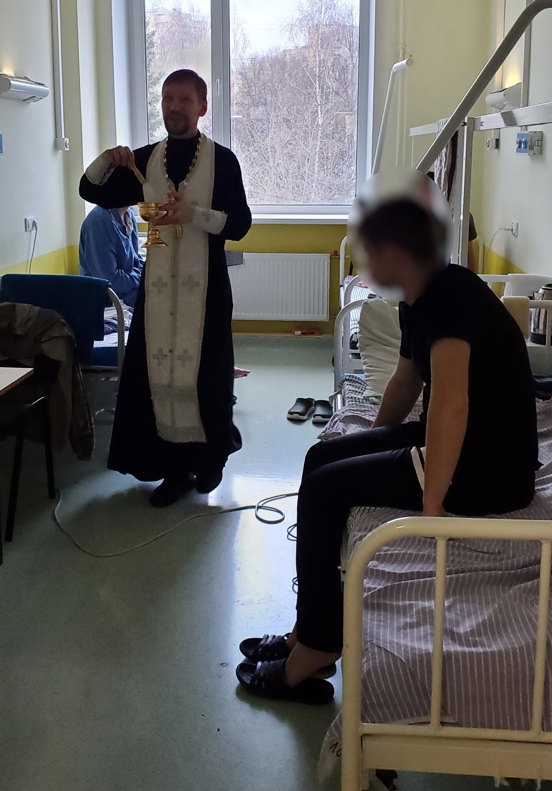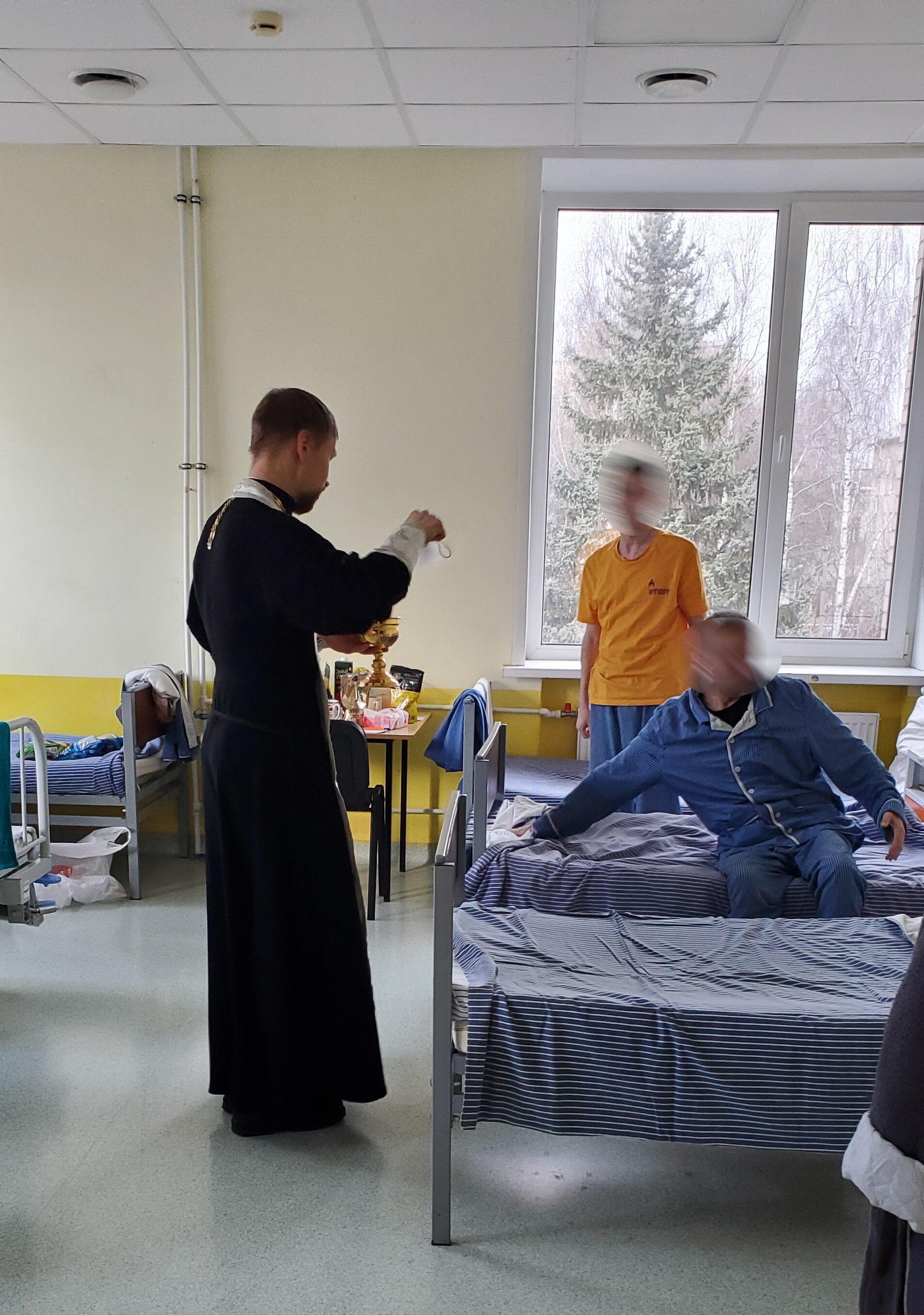 Отец Алексий окропил палаты и пациентов крещенской водой и поздравил с праздником. Священнослужитель провёл духовную беседу с военнослужащими, находящимися на лечении и ответил на поступившие вопросы.