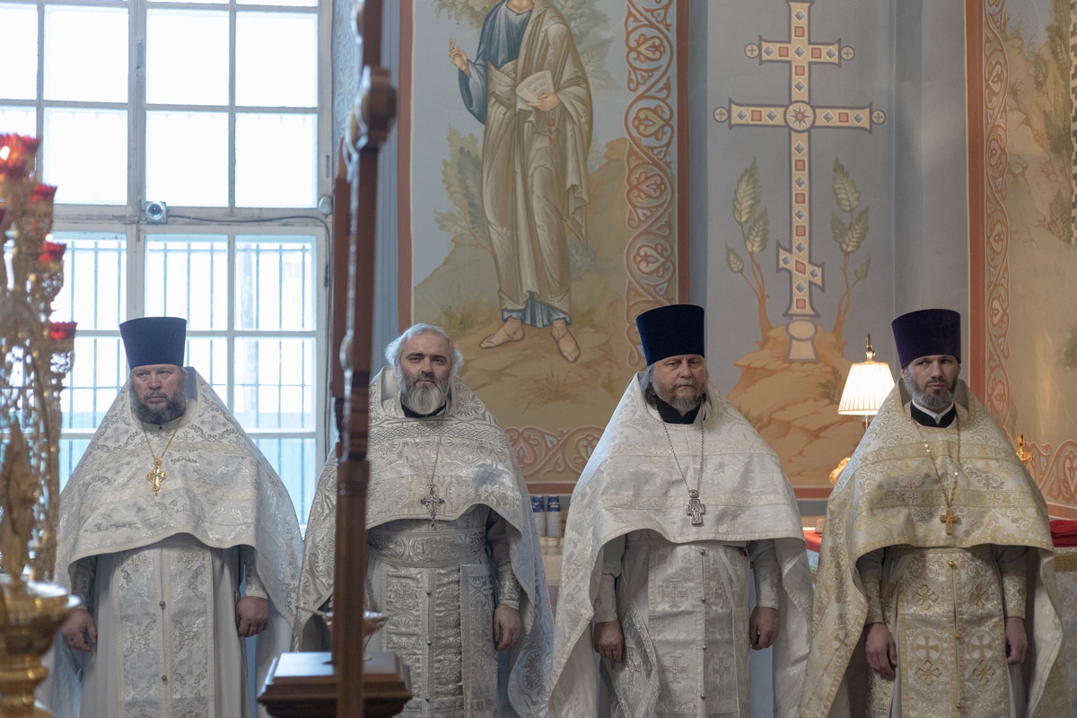 Его Преосвященству сослужили: секретарь Сергиево-Посадского епархиального управления, благочинный Ивантеевского церковного округа протоиерей Иоанн Монаршек; благочинный Рогачёвского церковного округа, настоятель Никольского храма с. Рогачёво иерей Сергий Сафронов; благочинные церковных округов: монастырей Сергиево-Посадской епархии – игумен Алексий (Горлычев), Дмитровского – протоиерей Афанасий Чорногуз, Яхромского – иерей Сергий Бернацкий, Дубненско-Талдомского – протоиерей Павел Мурзич; настоятель Борисоглебского мужского монастыря г. Дмитрова игумен Августин (Шорников); настоятель Никольского храма дер. Подмошье и Воскресенского храма дер. Карпово иерей Андрей Барышев; председатель Епархиального отдела по делам молодёжи, настоятель Петрофеврониевского храма г. Королёва иерей Димитрий Нестеров.