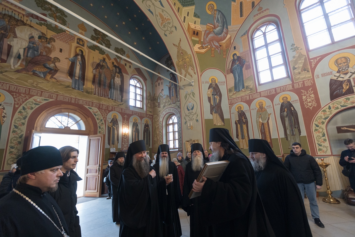 После богослужения и праздничной трапезы епископ Кирилл посетил Николо-Пешношский мужской монастырь пос. Луговой Дмитровского г.о. Под звон колоколов Его Преосвященство проследовал в Сергиевский храм, где поклонился мощам основателя обители преподобного Мефодия Пешношского и блаженного монаха Ионы, подвизавшегося здесь в XVIII веке. Также Владыка преподал архипастырское благословение братии и паломникам обители.