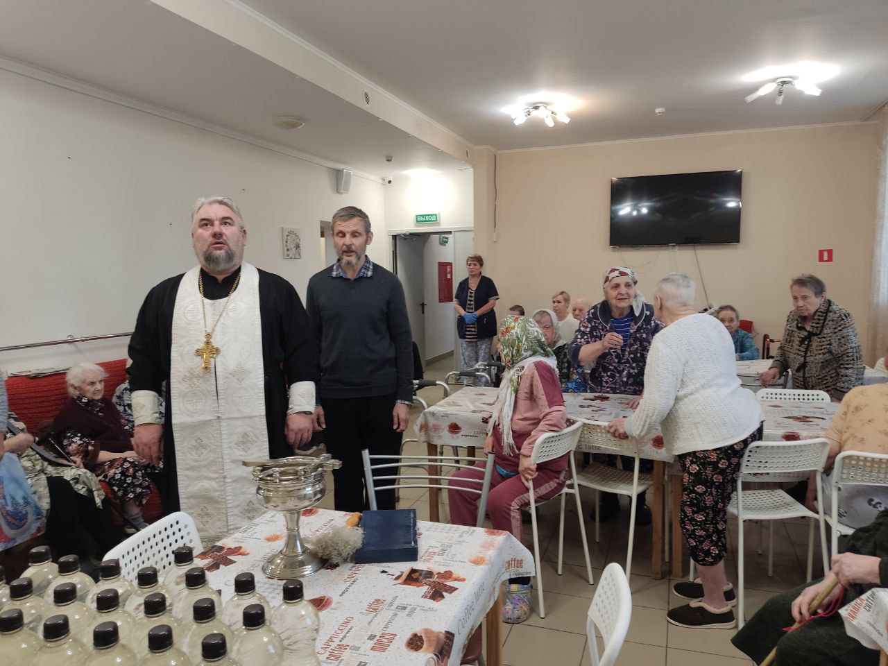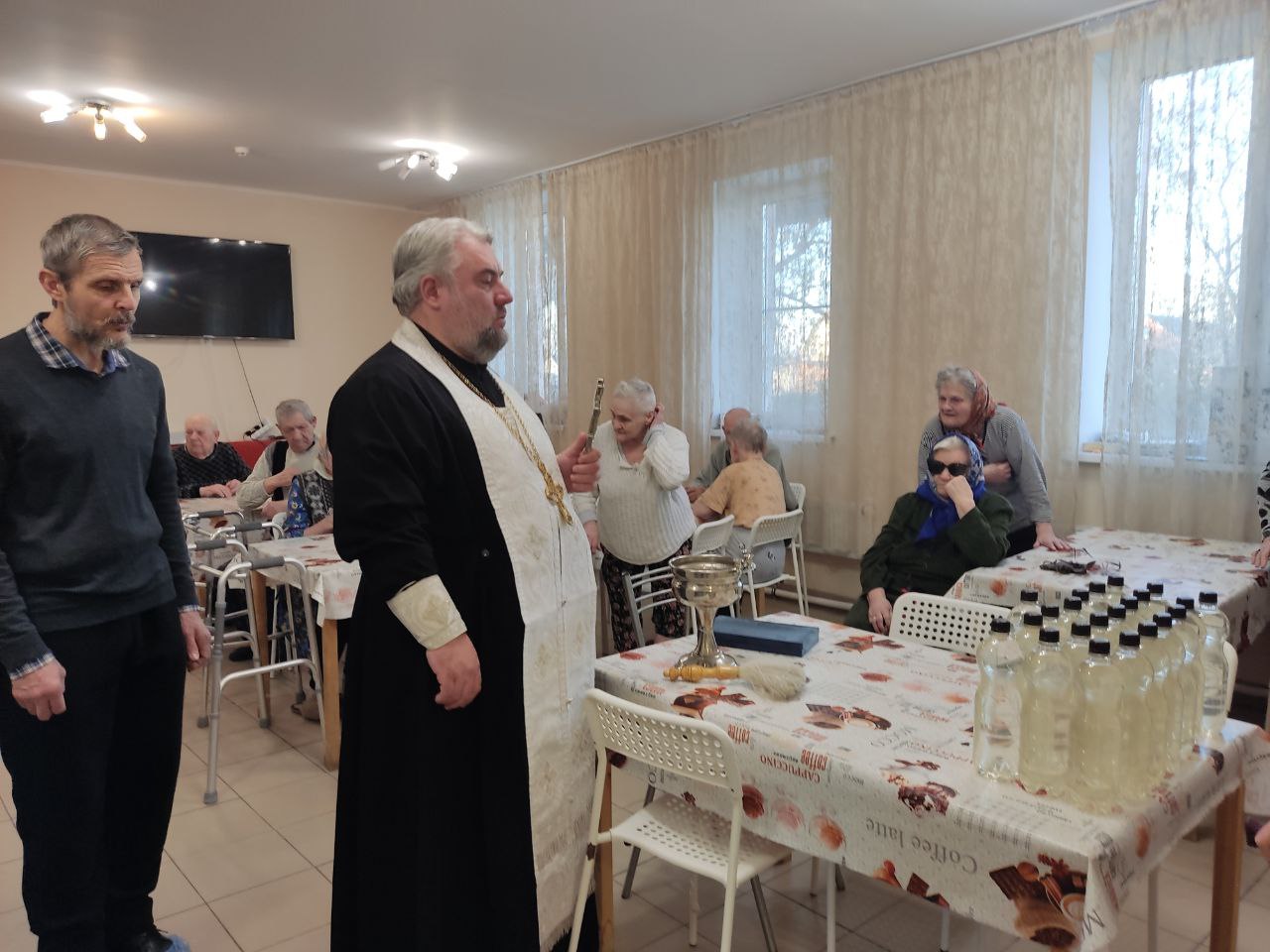 21 января 2025 г. благочинный 2-го Воскресенского благочиннического округа, настоятель Вознесенского храма села Барановское протоиерей Сергий Рыбаков посетил пансионат для пожилых людей, престарелых и инвалидов "Забота о близких", расположенный в селе Усадище. Во время своего визита он передал подопечным и персоналу учреждения Крещенскую воду от прихода, поздравил всех присутствующих с праздником Богоявления, окропил палаты, постояльцев и работников пансионата святой водой.