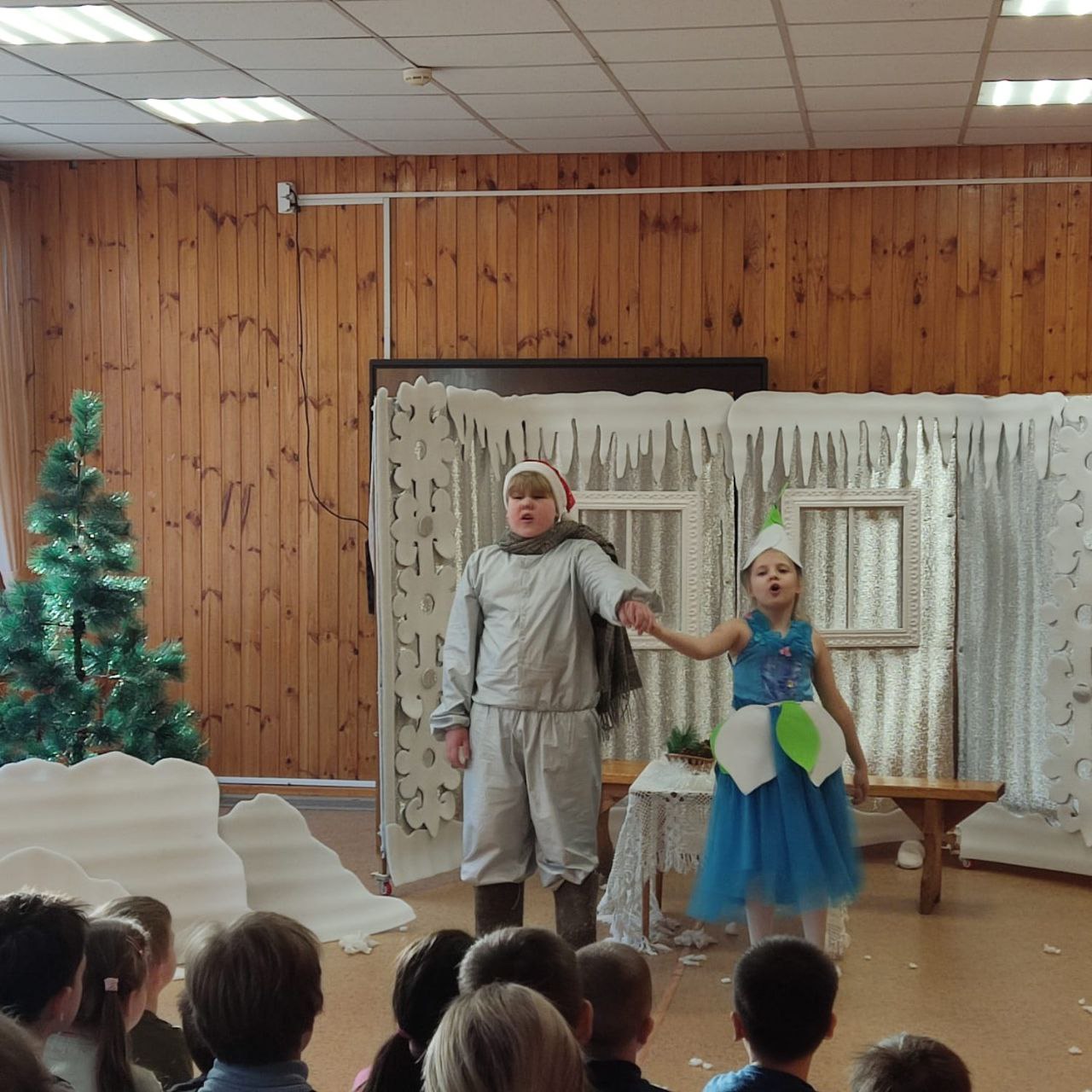 Вот такой дружественные союз принёс радость и пользу и большим, и маленьким детям. Главный герой музыкального спектакля "Рождественское чудо" - маленький снеговичок - подружился со всеми жителями леса и помог цветочку.