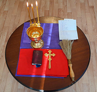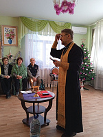 Отец Александр обстоятельно рассказал о Крещенском сочельнике, о Крещении Господне, о Богоявленской и Крещенской воде, окропил всех собравшихся в зале святой водой, также отец Александр окропил святой водой все помещения Центра.