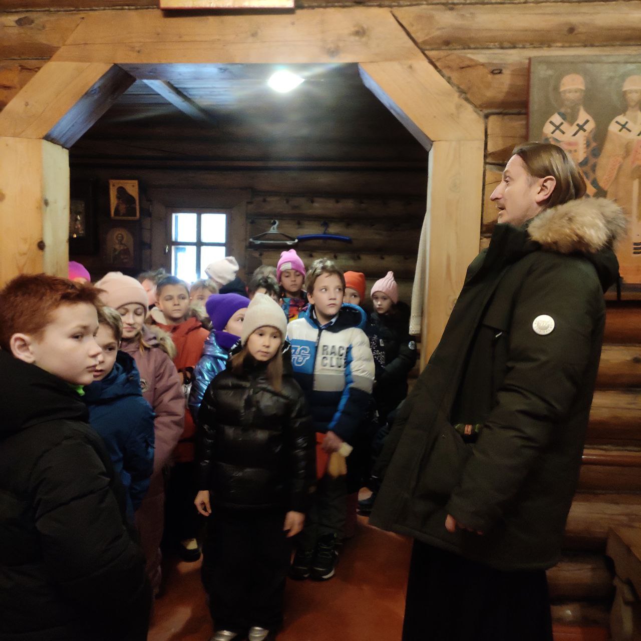 Иерей Павел Некрасов, клирик храма Рождества Иоанна Предтечи, провёл для детей беседу, в ходе которой рассказал о праздниках Рождества Христова и Крещения Господня.