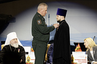 В торжественной обстановке были вручены награды Министерства обороны Российской Федерации священнослужителям, несущим пастырское служение в военных условиях.