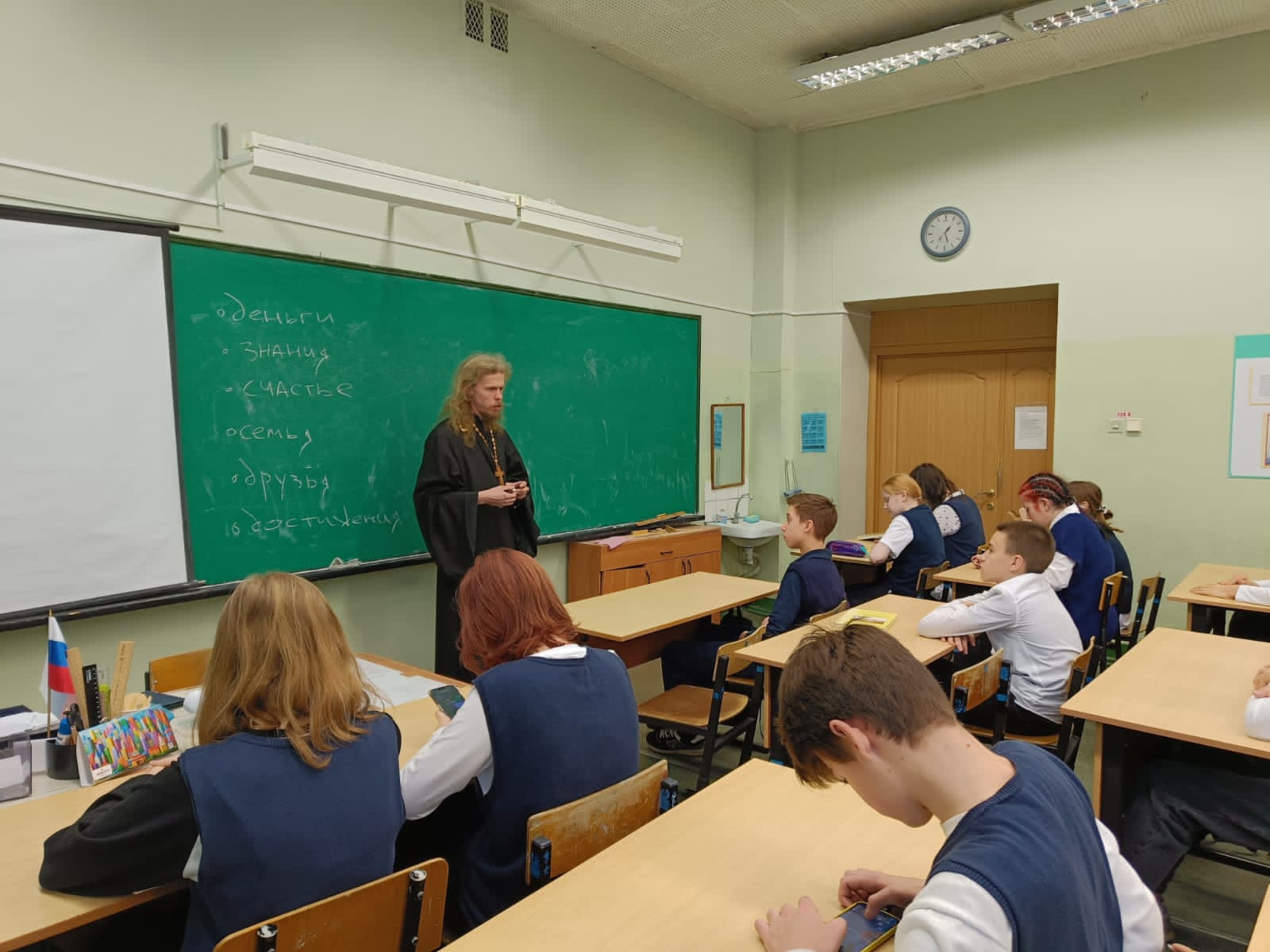 30 января ответственный за религиозное образование и катехизацию в Коломенских благочиннических округах священник Димитрий Шаповалов посетил гимназию №9 г. Коломны. Отец Димитрий встретился с учащимися 8А класса, провел беседу на тему духовной жизни и ответил на вопросы школьников.