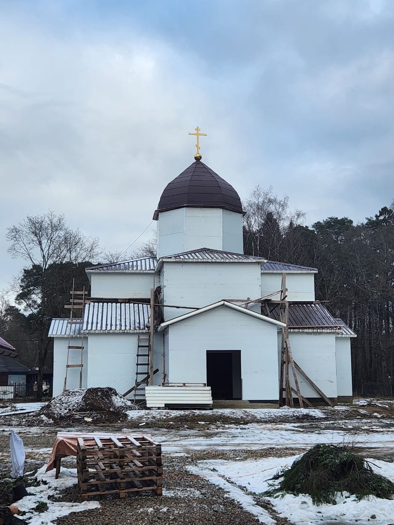 2 февраля состоялось водружение купола и креста на строящийся храм Преображения Господня посёлка Загорянский.