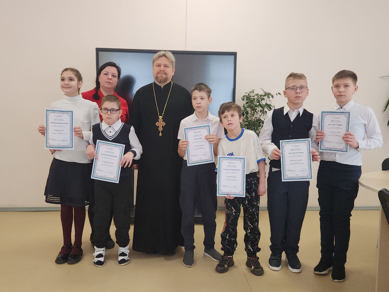 Отец Сергий поблагодарил педагогов, детей и родителей за участие в благотворительной выставке – ярмарке «Рождественское чудо», вручил грамоты и сладкие подарки.