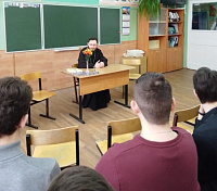 4 февраля ответственный по работе с молодёжью в 1-ом и 2-ом Егорьевских благочиниях священник Никита Чернышов в рамках проекта «Задай вопрос священнику» пообщался с учащимися 11-х классов средней школы № 3. В ходе беседы были рассмотрены вопросы взаимоотношения веры и разума, науки и религии, Бога и человека.