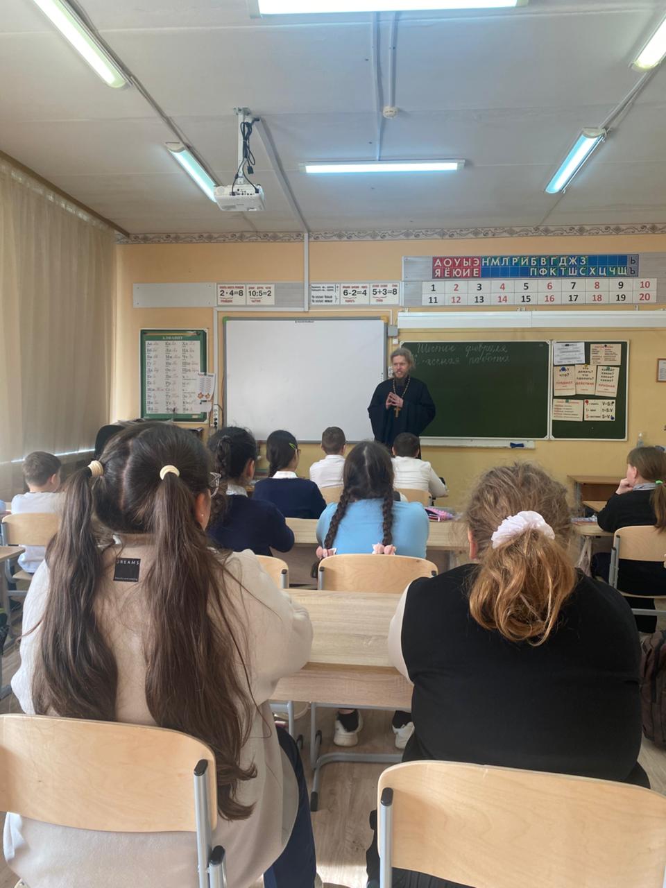 Затем отец Димитрий посетил Пирочинское отделение школы, где также встретился с учащимися третьего и четвёртого классов и провел с ними интерактивное занятие "изменение мира начинается с изменения себя".
