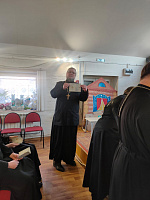 Е. А. Митин напомнил о пожарной безопасности при проведении богослужений. Ответственным за пожарную безопасность на приходах были вручены удостоверения о прохождении курса пожарной безопасности.