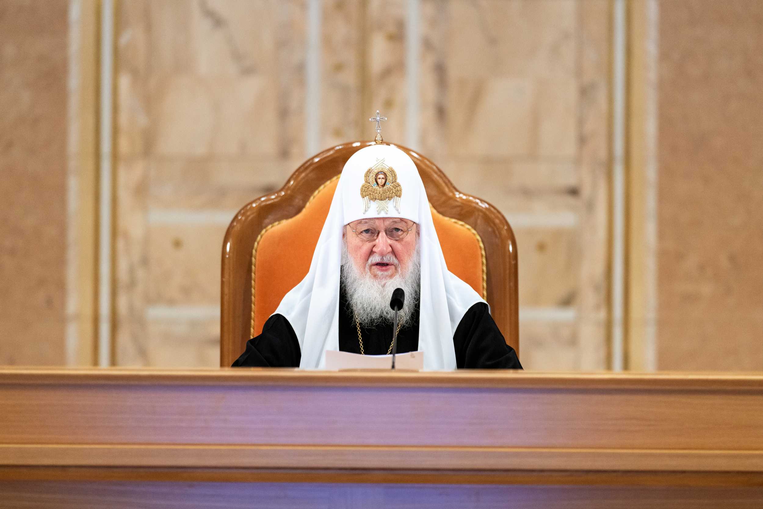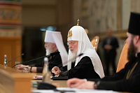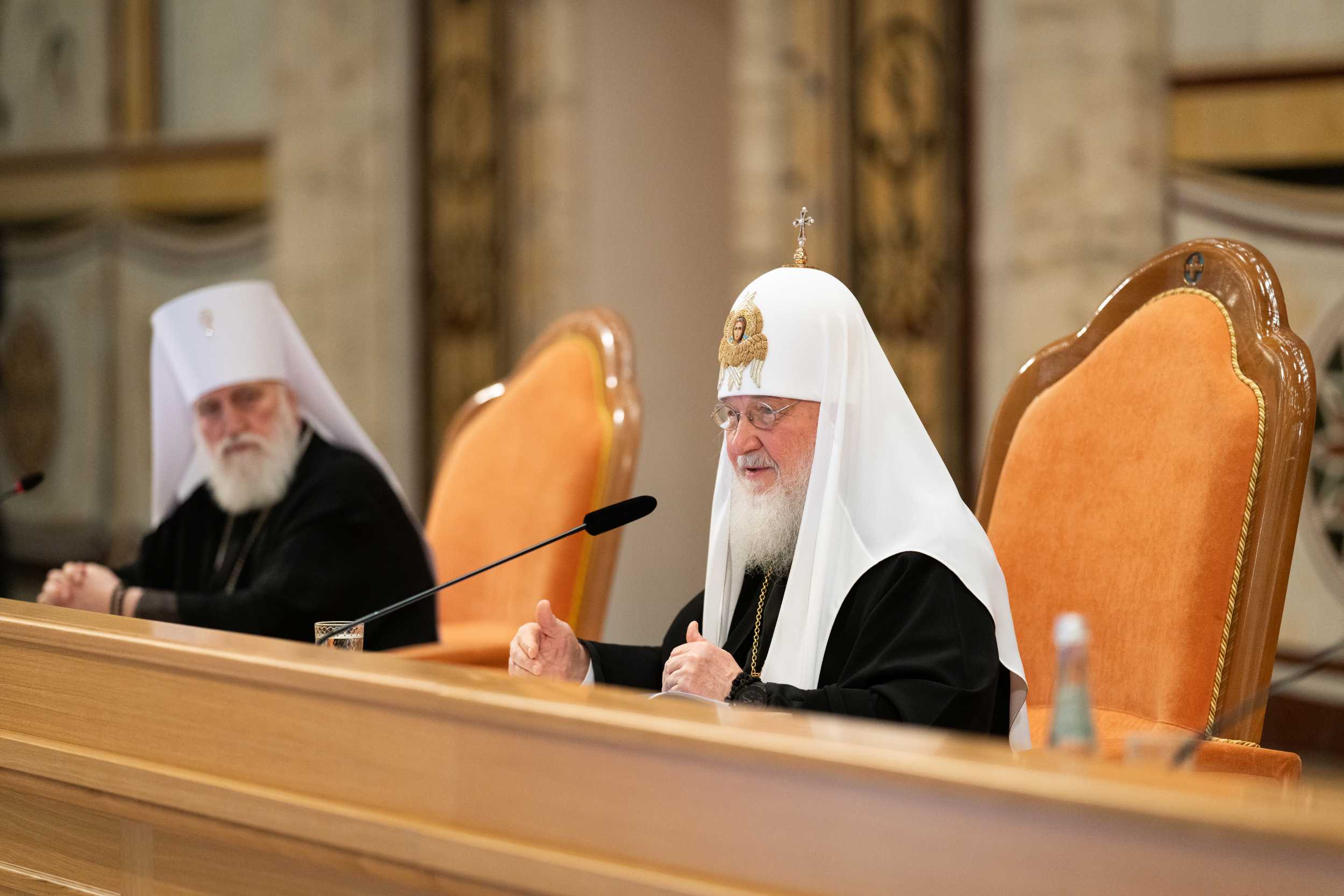 Святейший Патриарх Московский и всея Руси Кирилл выступил с основным докладом.