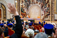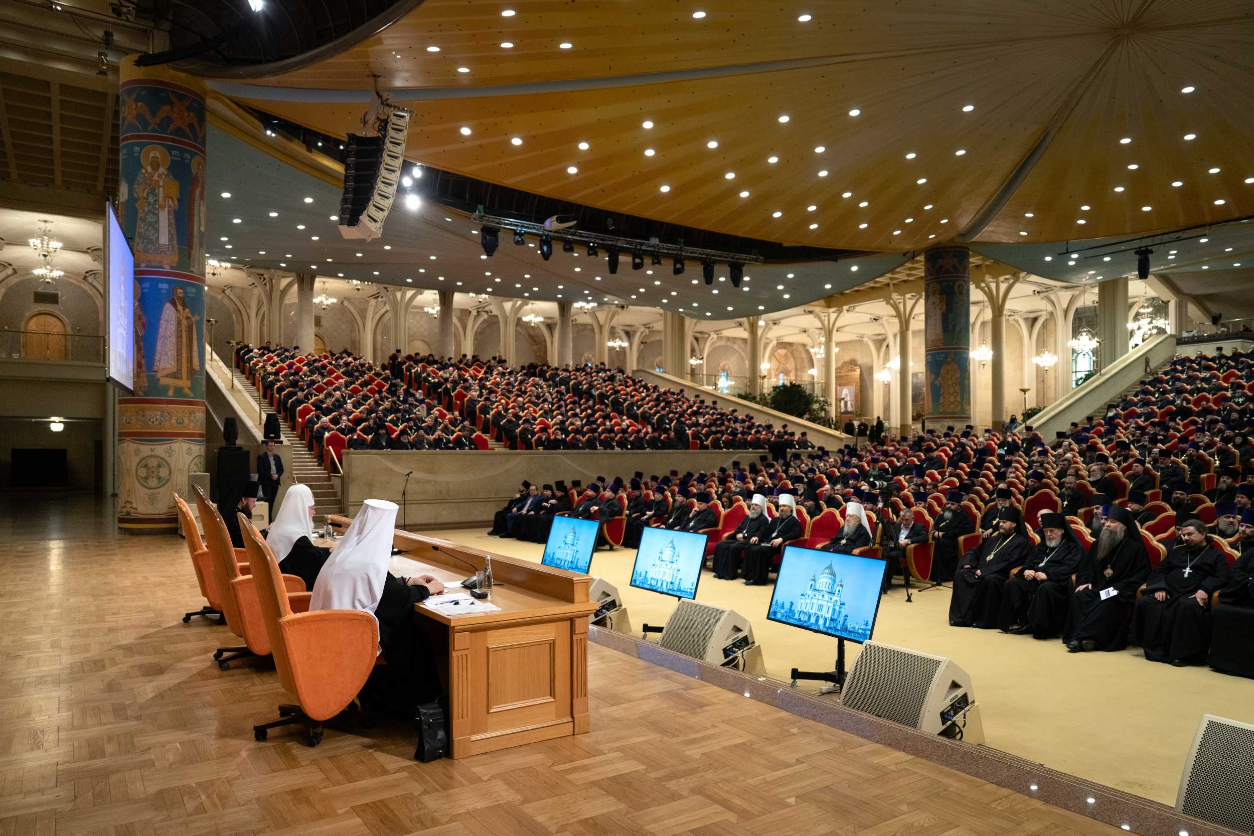 Святейший Патриарх Кирилл ответил на записки с вопросами, поданные участниками собрания в президиум, а также на вопросы из зала.